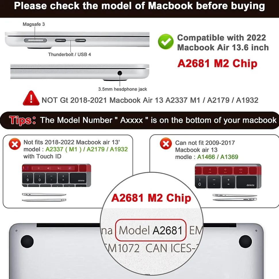 - ONLY Compatible with New MacBook Macbook Air 13.6 inch M2 Chip 2022 Release with Liquid Retina Display With Touch ID. (Model A2681)