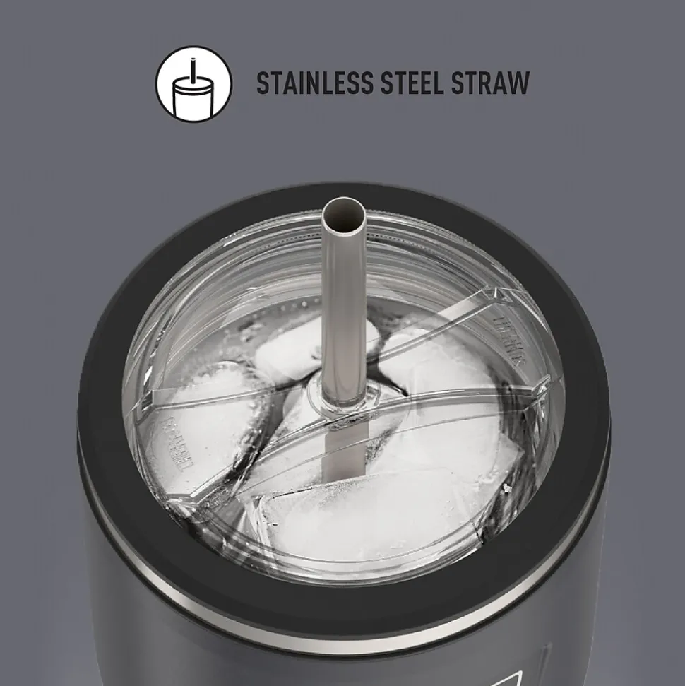 Starts cold. Stays cold. The Icon™ 24-Oz. Stainless Steel Cold Tumbler with Straw from Thermos® helps you stay hydrated to take on the day. It comes equipped with a stainless steel straw to keep up with whatever your day has in store. From the nonslip Griptec™ base to superior vacuum insulation and durable True-Coat™ finishes, the Icon™ Series by Thermos® is an ideal tumbler for everyday use. It’s dishwasher safe, but don’t use with hot liquids.