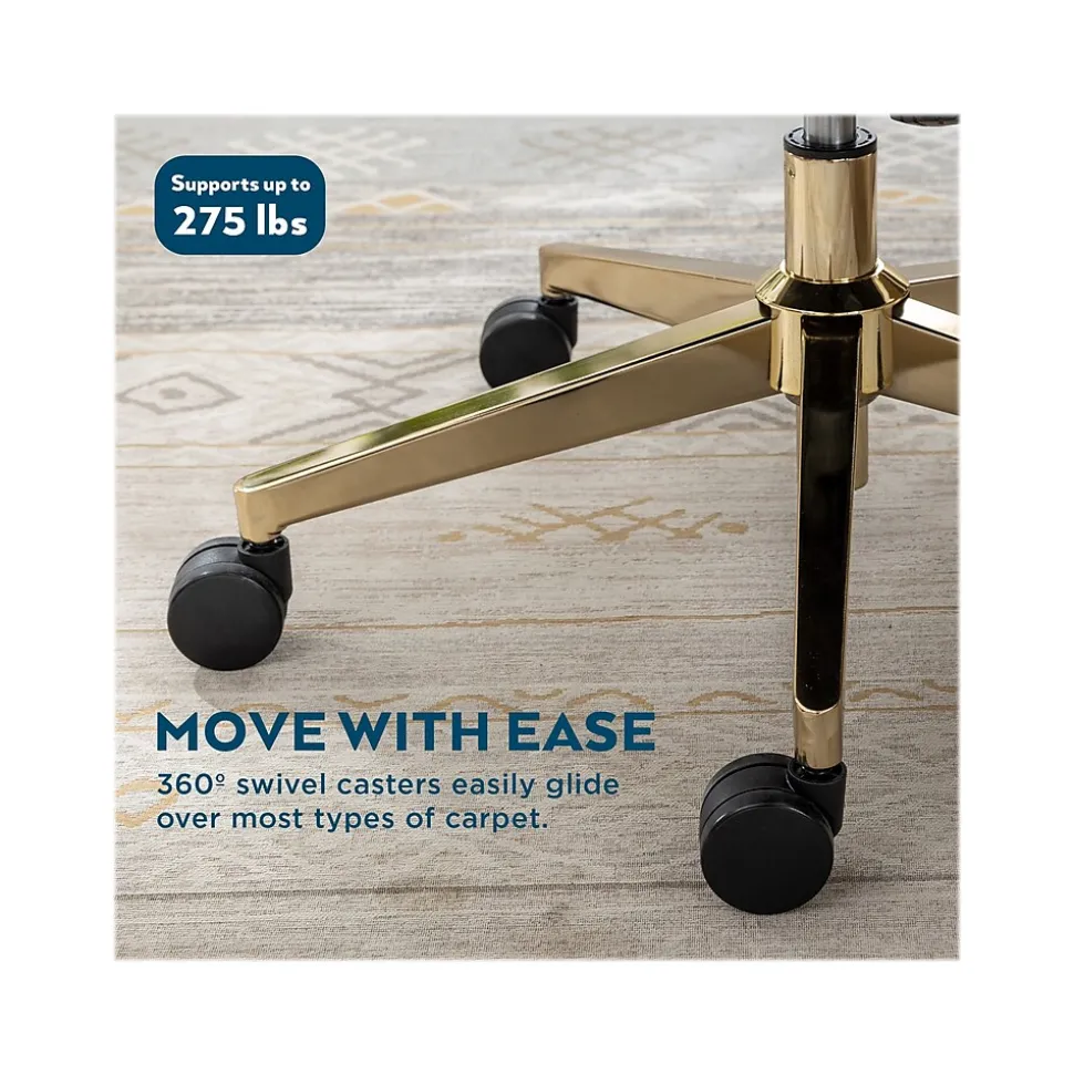 Featuring plush cushioning, clean lines, and a tailored silhouette, the Thomasville Furniture Jolie office chair is an inviting blend of comfort and style. With the velvety microsuede upholstery and metal frame in gold-tone plating, this office chair is well-suited to a range of decors. Ergonomic and adjustable, this modern desk chair is fitted with a pneumatic lift mechanism to control the seat height for optimized body alignment. Finished with sturdy rolling wheels, this executive office chair allows you to move quickly and efficiently. Bring sophisticated style to any office with this chair.