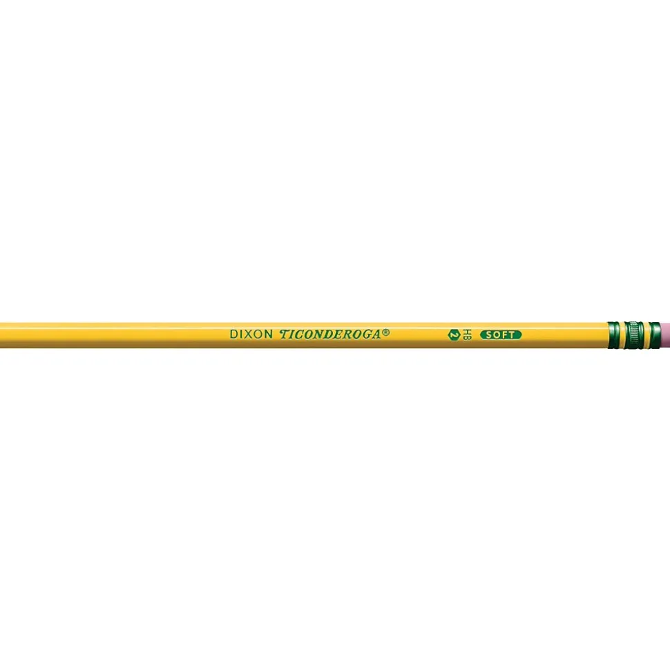 Write with smooth, consistent marks using these yellow-barrel pencils. The pencils are crafted from premium wood for durability, and the solid graphite core delivers easy-to-read print and a break-resistant point. These Dixon Ticonderoga wood-case pencils have a latex-free eraser that makes it easy to correct mistakes and eliminate stray marks.