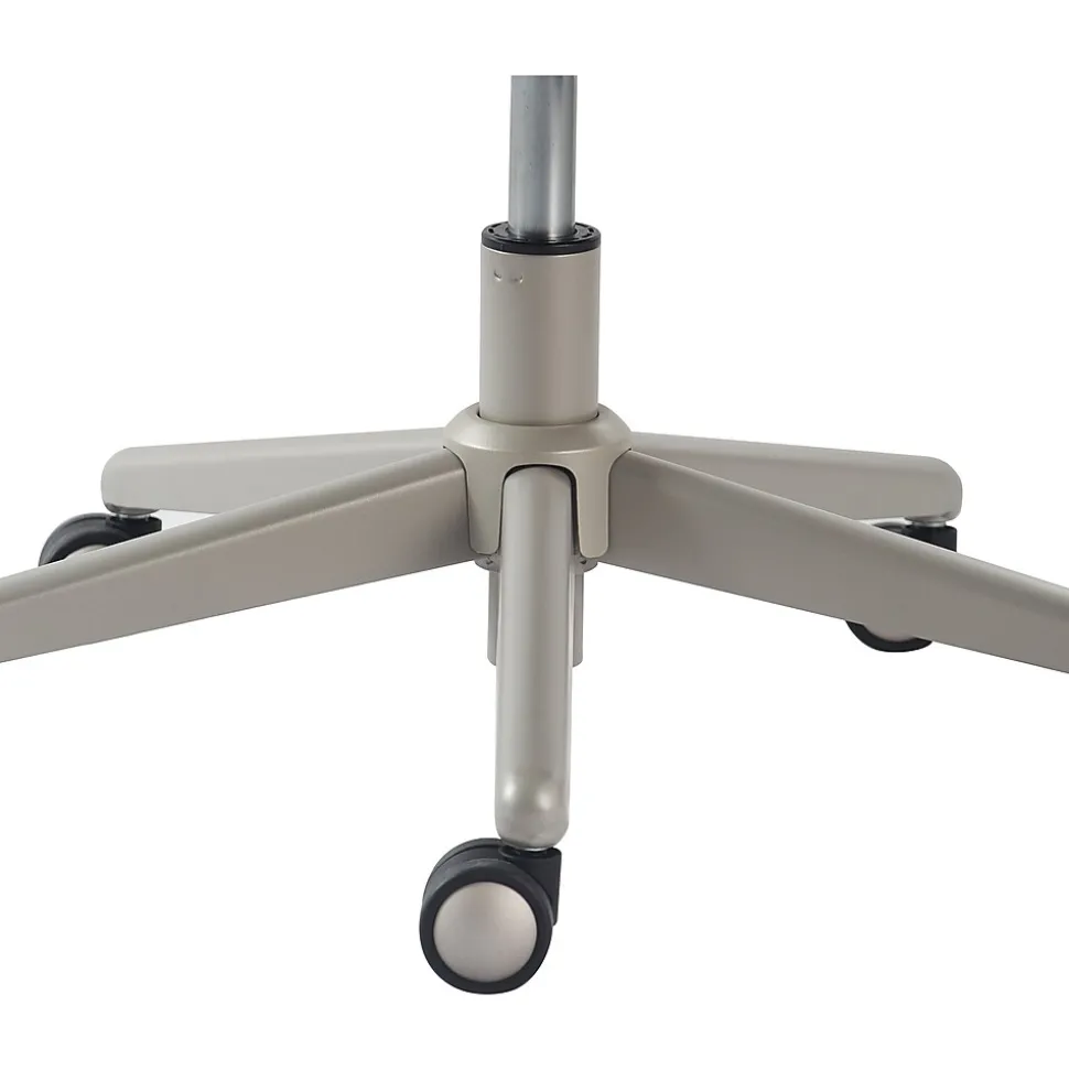 - Silver-tone base with smooth-rolling casters adds movement versatility