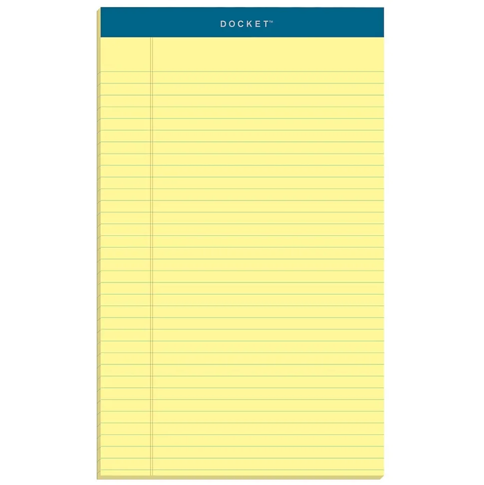 Take notes or write letters and messages with this 12-pad pack of TOPS Docket tablets. Micro-perforated sheets tear easily for clean, neat edges, and the 16-pound everyday-weight paper provides a smooth writing surface with minimal ink bleed through. The sturdy back cover of these 50-sheet TOPS Docket tablets are supportive so you can write notes away from a desk.