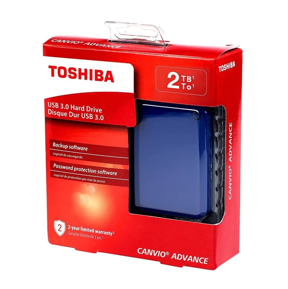 The Canvio Advance portable hard drive allows creators to do what they do best – anywhere their lives take them – offering high storage capacity, 24/7 access to your stored content and the time-tested reliable performance they need. Whenever and wherever creativity strikes, Canvio Advance offers the space to create. The Toshiba Canvio Advance provides a lot of storage so you can store thousands of pictures, videos, music, or a variety of large files on a small 2.5″ portable drive. The Toshiba Canvio Advance features a minimalist design as well as clean edges, a sleek, high-gloss surface, and color options to inspire you – it’s your life, your style, your speed. Keep your files safe and secure with features such as password protection and scheduled backup. Work at the speed of inspiration with the lightning fast transfer speeds of Canvio Advance. With USB 3.0 you’ll be able to transfer and backup files on the go while powering the drive through your laptop’s USB connection. These durable external hard drives are built to Toshiba’s world-class quality standards. Access all of your stored content 24/7 easily from the Canvio Advance hard drive.