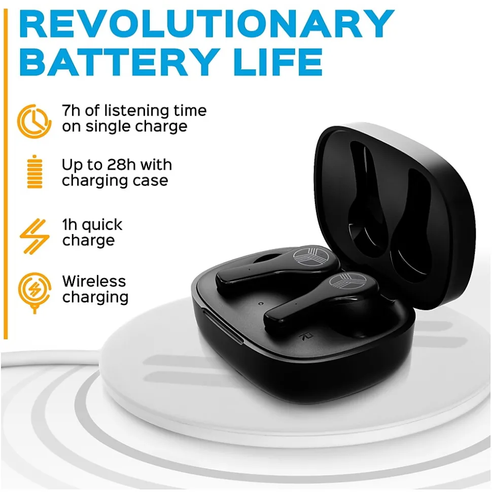 - Extended battery & Wireless charging – Discover crystal-clear sound for up to 28 hrs with the WX8 Bluetooth wireless earbuds with charging case. Charge the headphones in just 1 hr with wireless or USB-C, and store 4 charges in each case.