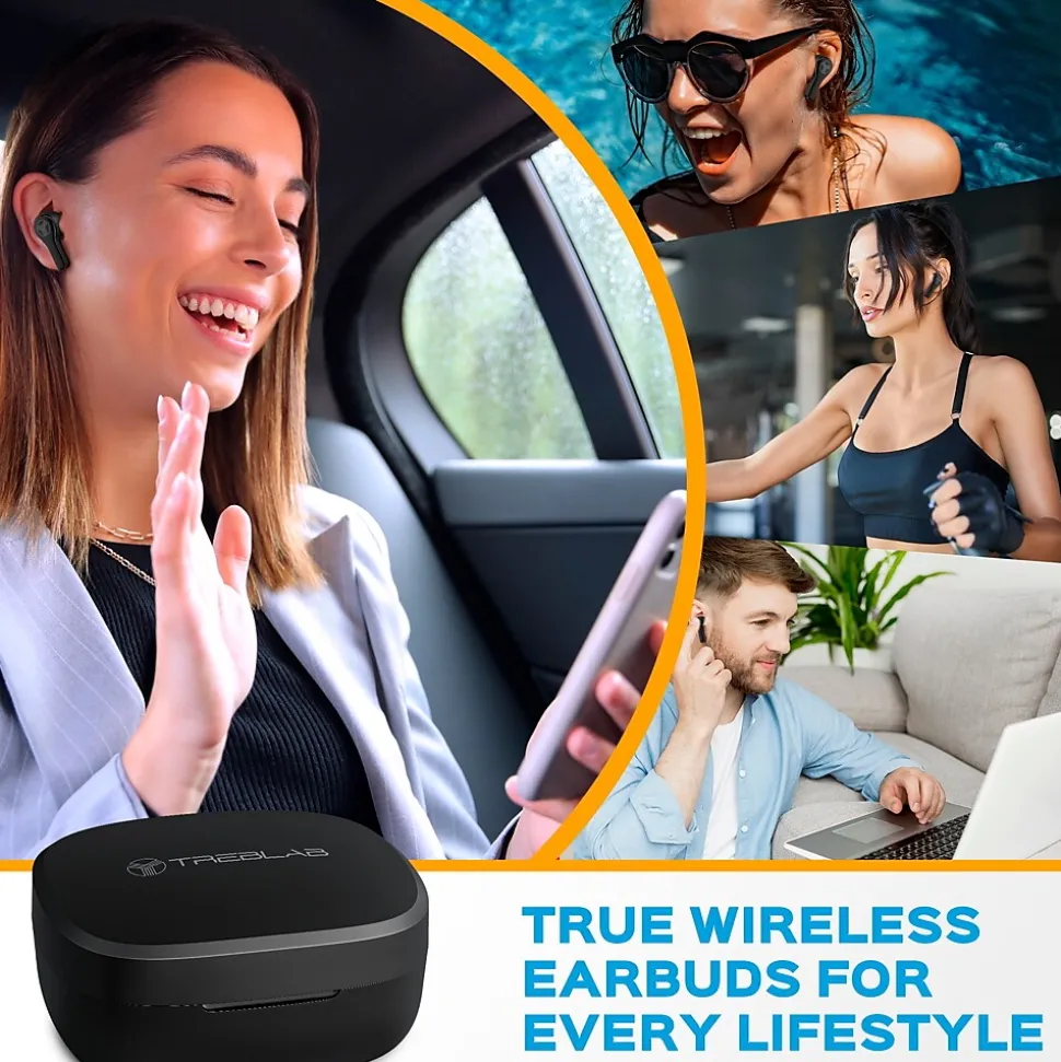 Dive into a world of spectacular sound and clarity with TREBLAB’s WX8 true wireless headphones with microphone capabilities.