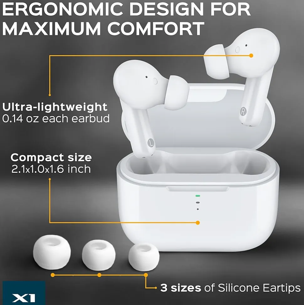- Rapid Charging – Listen to tunes for up to 24 hours with Bluetooth wireless in-ear headphones with charging case that offer six 4-hr playbacks. Quick charge the X1 earbuds for 1 hour of playtime in just 10 minutes.