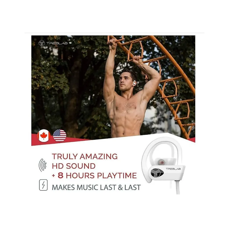 Our Treblab XR500 wireless earbuds use latest Bluetooth 4.1 CSR technology and most advanced components. Enjoy unparalleled quality of sound with tight bass and highs that tingle your hearing senses. Whether running, biking, training hard in the gym, or doing any kind of physical activity, our IPX4 SWEAT-PROOF sports Bluetooth earbuds feel great to wear and will never fall out