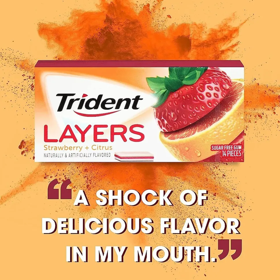 It’s much more than gum. It’s a gumwichâ„¢! Try Citrus sandwiched between two layers Strawberry. Find out what Apple stacked on Pineapple stacked on Apple tastes like. As if chewing Trident® wasn’t good enough, now happy comes in layers.