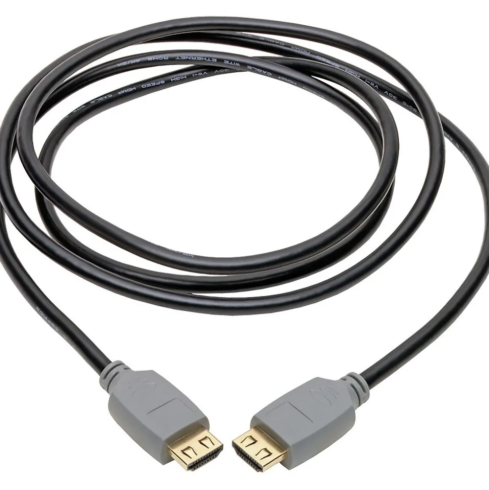 4K HDMI 2.0a Cable Connects Home Theater or Digital Signage Audio/Video Components: This high-speed HDMI 2.0a cable securely connects HDMI-enabled laptops, tablets, PCs, Blu-ray players, game consoles or satellite/cable TV boxes to HDTVs, HD monitors, projectors or home theater receivers. Gripping HDMI connectors on both ends help ensure components stay firmly attached to avoid viewing interruptions. The six-foot length allows you flexibility in placing your home theater components. Enjoy the Clarity of True 4K HDMI 2.0a Video with Multi-Channel Audio and 4:4:4 Color: This Tripp Lite 4K HDMI cable provides a pure digital connection that supports Ultra HD video resolutions up to 3840 x 2160 (4K x 2K) at 60 Hz for crystal-clear picture and sound. It’s compatible with HDCP 2.2 and HDMI 2.0a standards for carrying HDR (high dynamic range) signals. It also supports 4:4:4 chroma subsampling for top-level PC gaming or using your HDTV as a PC monitor. The cable is backward compatible with previous HDMI generations, allowing you to use it to connect lower-resolution components. Avoid Signal Disruptions with Extra-Secure Gripping HDMI Connectors: Having a cable come loose accidentally can cause A/V signal loss right as the running back scrambles for the end zone or your avatar is surrounded by zombies. These specially designed HDMI connectors firmly grip the HDMI ports on your equipment to help prevent accidental disconnection and signal disruption. With greater port retention than typical HDMI connectors, the gripping connectors resist vibrations that can loosen connections over time. This is especially helpful for ensuring components stay attached in difficult-to-access installations. Invest in Quality Construction for Reliable Performance: High-quality materials ensure outstanding performance throughout the cable’s lifetime. Contacts and connectors are gold-plated to resist corrosion. Double shielding reduces line noise (EMI/RFI) that can disrupt signals traveling through the HDMI cord.