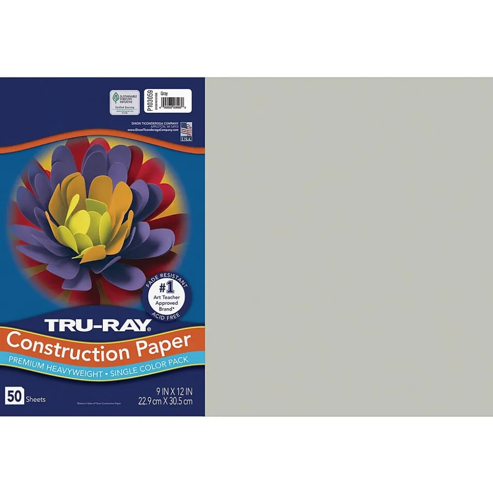 Heavyweight 100% vat-dyed sulphite with longer, stronger fibers. Tru-Ray® Construction Paper is tough enough to take scoring, folding and curling without cracking and tearing. Its superior fade-resistance keeps projects brighter and fresher longer. Available in 38 stay bright colors. 50 sheets per package. Acid free for less fade. 50% recycled fiber content and recyclable.