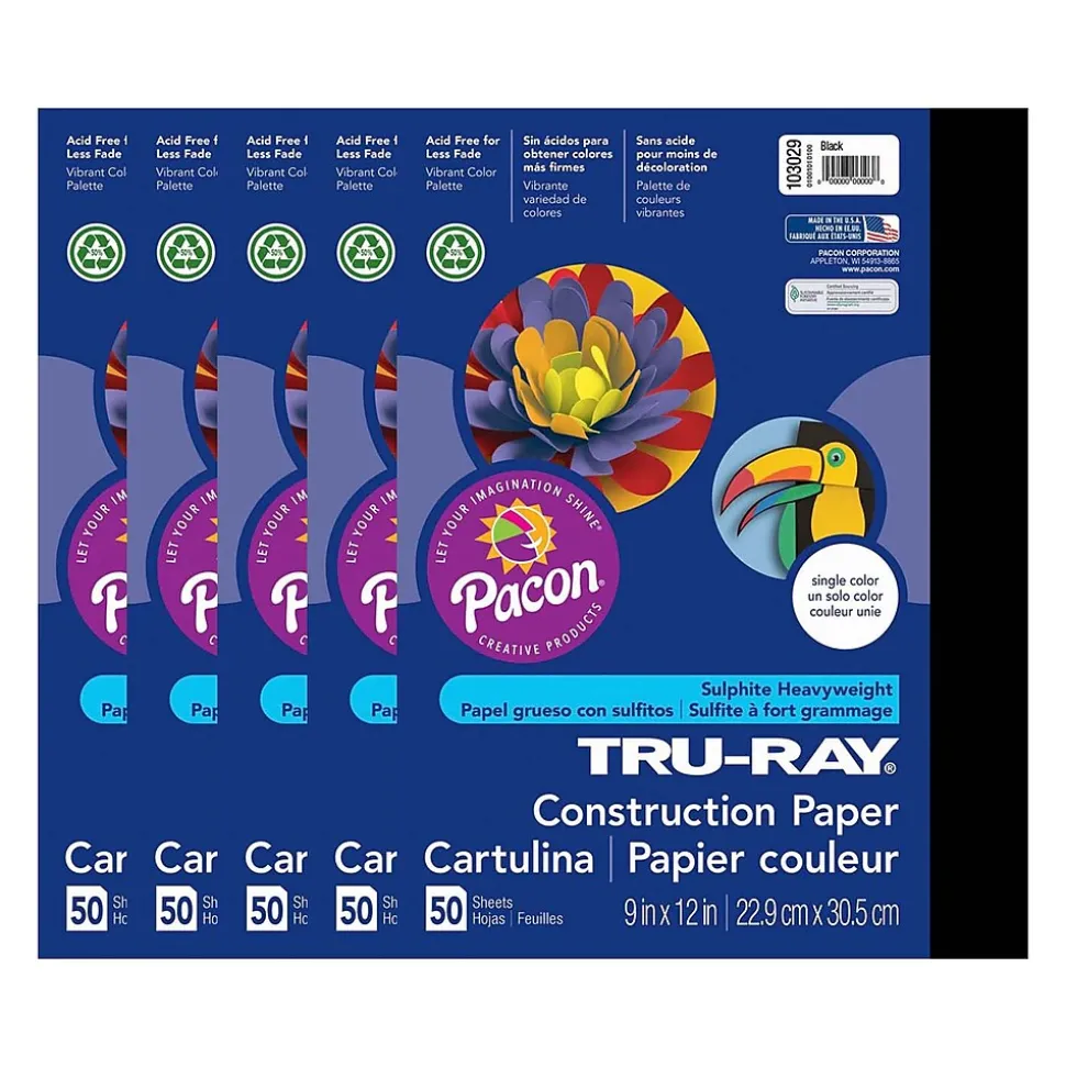 Heavyweight 100% vat-dyed sulphite with longer, stronger fibers. Tru-Ray® Construction Paper is tough enough to take scoring, folding and curling without cracking and tearing. Its superior fade-resistance keeps projects brighter and fresher longer. Each pack includes 50 sheets. Each sheet measures 9″ x 12″. Sold as 5 packs for a total of 250 sheets.