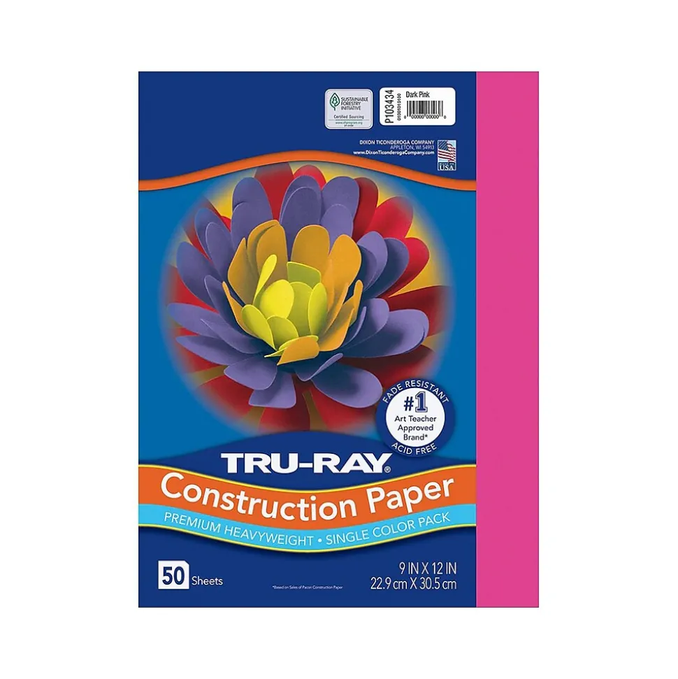 The Tru-Ray construction paper is tough enough to take scoring, folding, and curling without cracking and tearing. Its superior fade-resistance keeps projects bright and fresh longer. 50 sheets per package. Acid-free for less fade. 50% recycled fiber content and is recyclable.