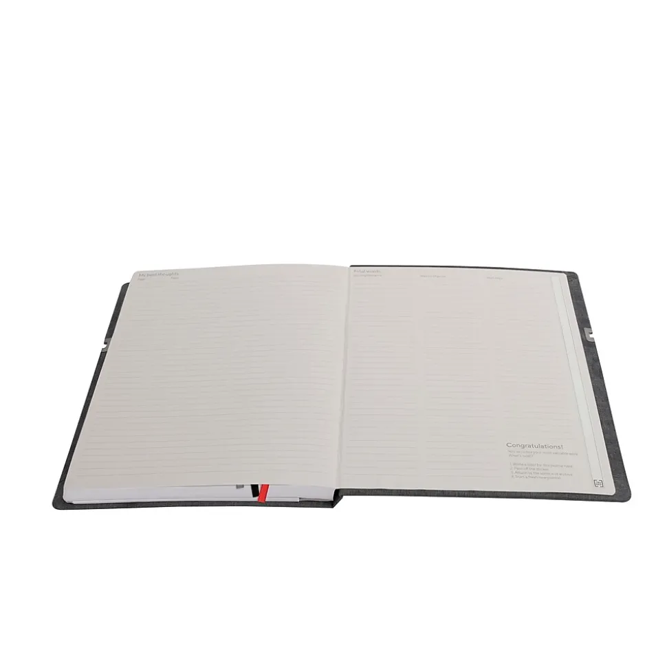 Enhance your productivity with this 192-page charcoal hardcover journal. Lined pages with dividing markers let you write notes and create lists and tables in one page, while the included pocket journal is ideal for recording information on the go. This TRU RED 8 x 10-inch charcoal Mastery journal has an inside front cover pocket to accommodate important documents, tickets and cards.