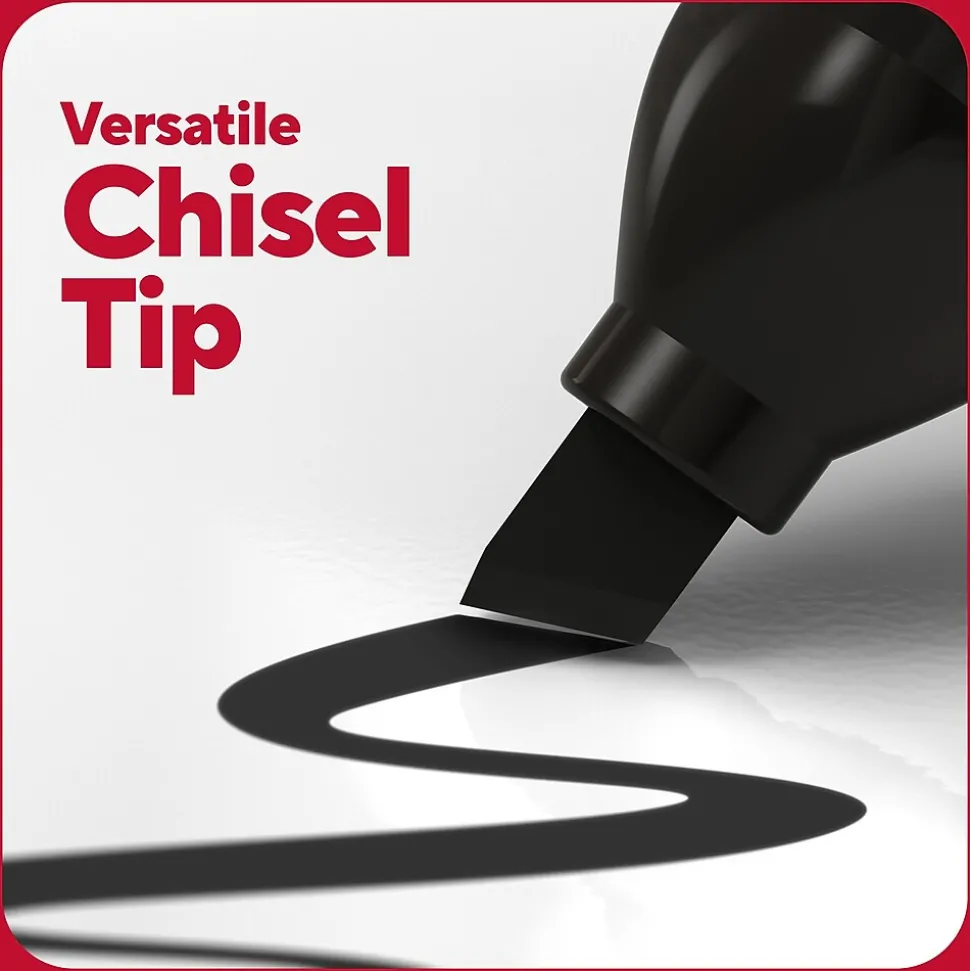 - Comes with 12 chisel-tip dry erase markers in bold black color