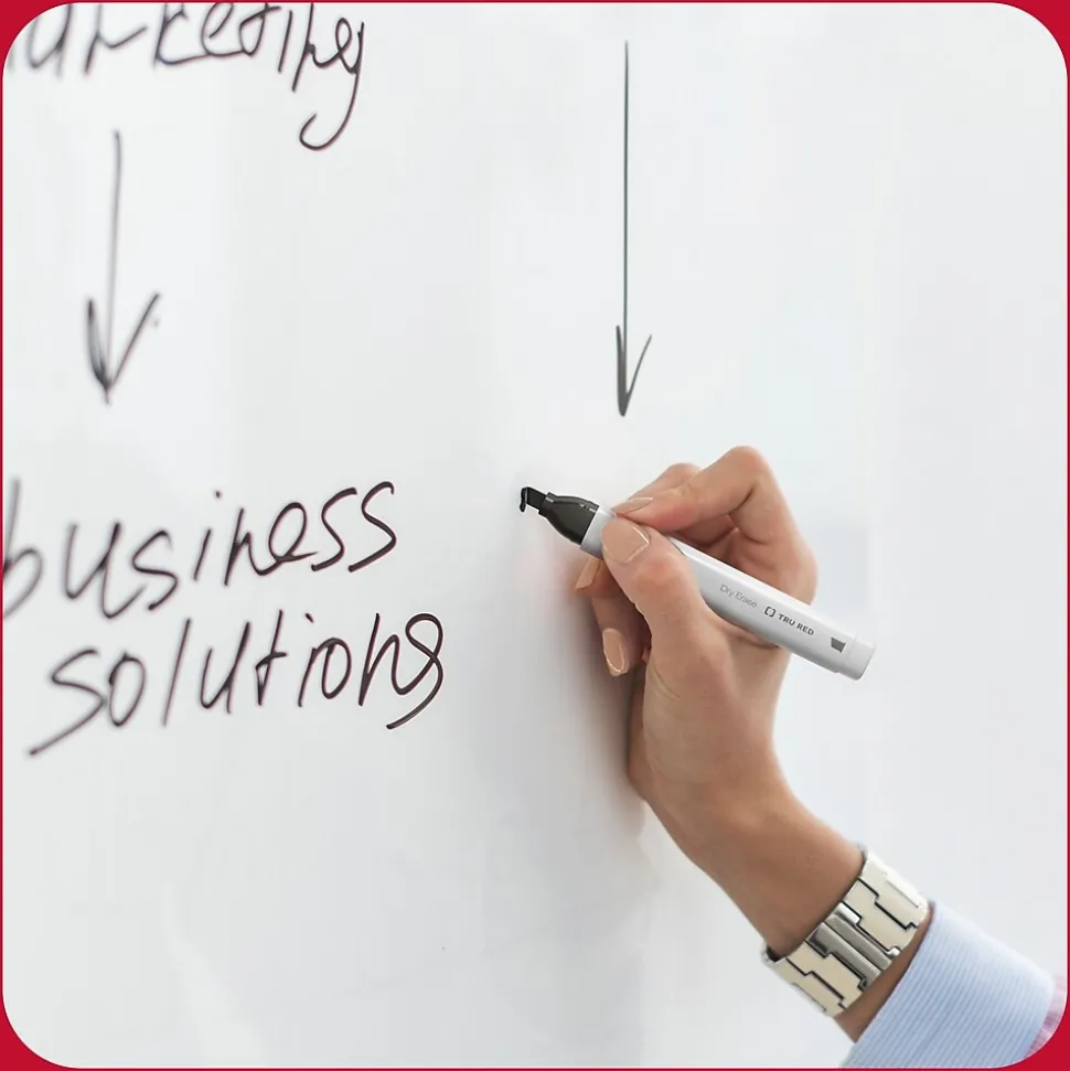 Get teams or students ready to collaborate and learn with this dry erase TRU RED™ Dry Erase Marker 12-pack. The low-odor ink markers feature a chisel-tip for neat writing and a Squircle™ barrel so they won’t roll away. Jot down your big ideas or practice drills in bold, quick-drying black color.