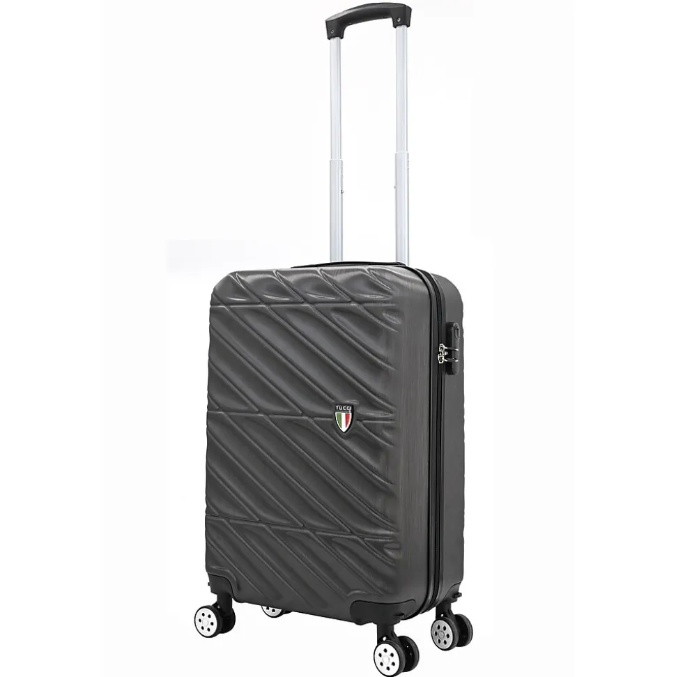 The Tucci Contratto 3-Piece Luggage Set in Charcoal (T0533-04PC-CHL) combines timeless elegance with modern functionality, making it a reliable choice for any journey. This set includes a carry-on, a medium-sized suitcase, and a large checked bag, each featuring a sleek charcoal finish with a scratch-resistant hard shell for enhanced durability.Constructed from lightweight yet sturdy materials, the Contratto set offers easy mobility with 360-degree spinner wheels and an ergonomic telescoping handle, ensuring smooth navigation. The interiors are spacious, featuring Tucci’s signature deluxe lining, adjustable straps, and multiple compartments for organized packing. Each piece also includes a 2” expandable feature, providing up to 35% more packing space when needed. The built-in combination lock adds a layer of security, while the soft jelly handle grips ensure comfortable handling.With its stylish design and practical features, the Tucci Contratto set in Charcoal is perfect for travelers seeking a sophisticated and versatile luggage solution.