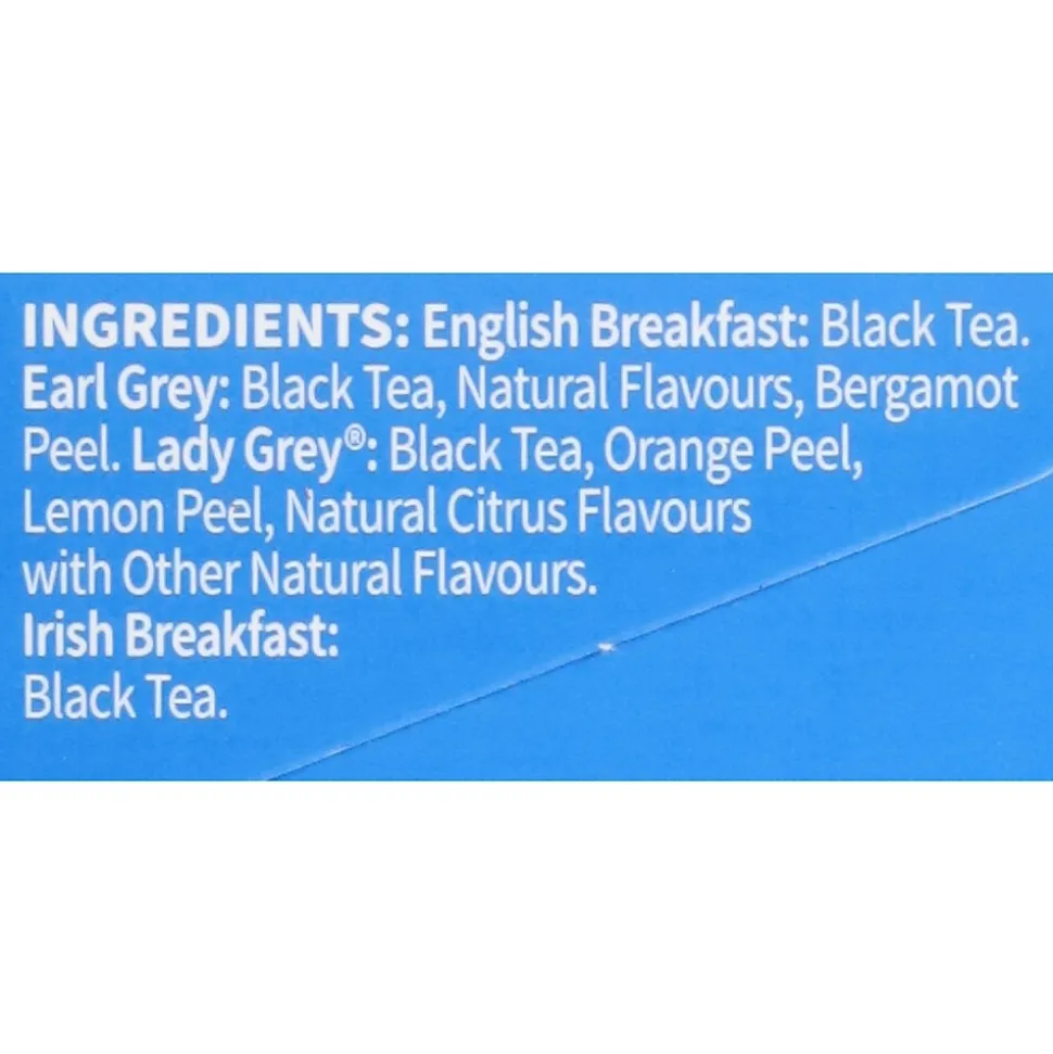 | Tea Flavor Actual manufacturer name for flavor | English Breakfast/Earl Grey/Lady Grey/Irish Breakfast |