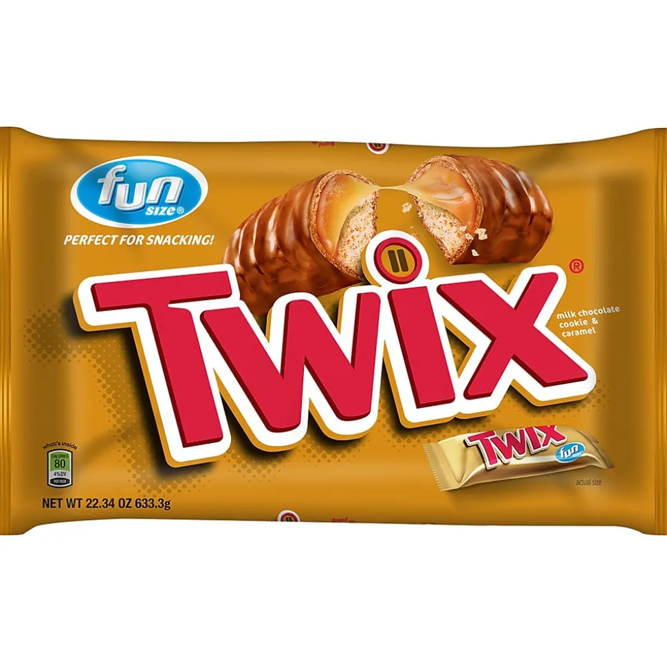 - Bulk bag of fun size TWIX Caramel and Cookie Candy Bars