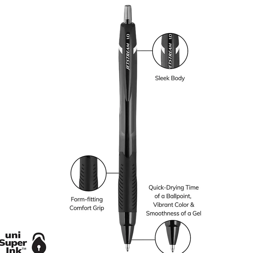 Inspire creativity with Jetstream Elements Ballpoint Pens from uniball with a 1.0mm medium point. Available in a wide assortment of colorful ink options, these pens feature an innovative hybrid ink that combines the quick-drying properties of a ballpoint with the smoothness and vibrancy of a gel pen. Whether it’s color-coding notes and lists or uniquely embellishing fun and creative writing projects, these JETSTREAM ELEMENTS ballpoint pens are suitable for a variety of projects. A contoured grip ensures greater comfort for extended writing and creating. uni Super Ink technology forms a strong bond with the paper, protecting your work from water, fading and fraud. You are simply left with exceptionally smooth and crisp lines. JETSTREAM ELEMENTS ballpoint pens give all of your ideas a burst of brilliant color.