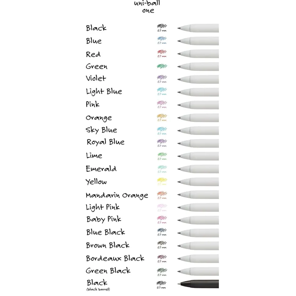 Experience the next stage of ink technology innovation with uniball one retractable gel pens from featuring a 0.7mm medium point. The revolutionary gel ink is specially formulated with large pigments that do not absorb into paper. This results in writing and drawing that is darker, brighter, and ultra-vivid. Quick-drying gel pens resist smudging, smearing, and bleeding, making them perfect for crisp and easy-to-read notes and assignments. A 0.7mm medium tip strikes the perfect balance between bold and detailed lines. The sleek white barrel with integrated anti-slip grip makes this pen a stylish writing tool. Additionally, the functional wire clip indicates the gel ink color, as well as opens wide for easy attachment to papers, notebooks, or folders. uniball one gel ink delivers superior writing performance whether at school, at home, or at work.