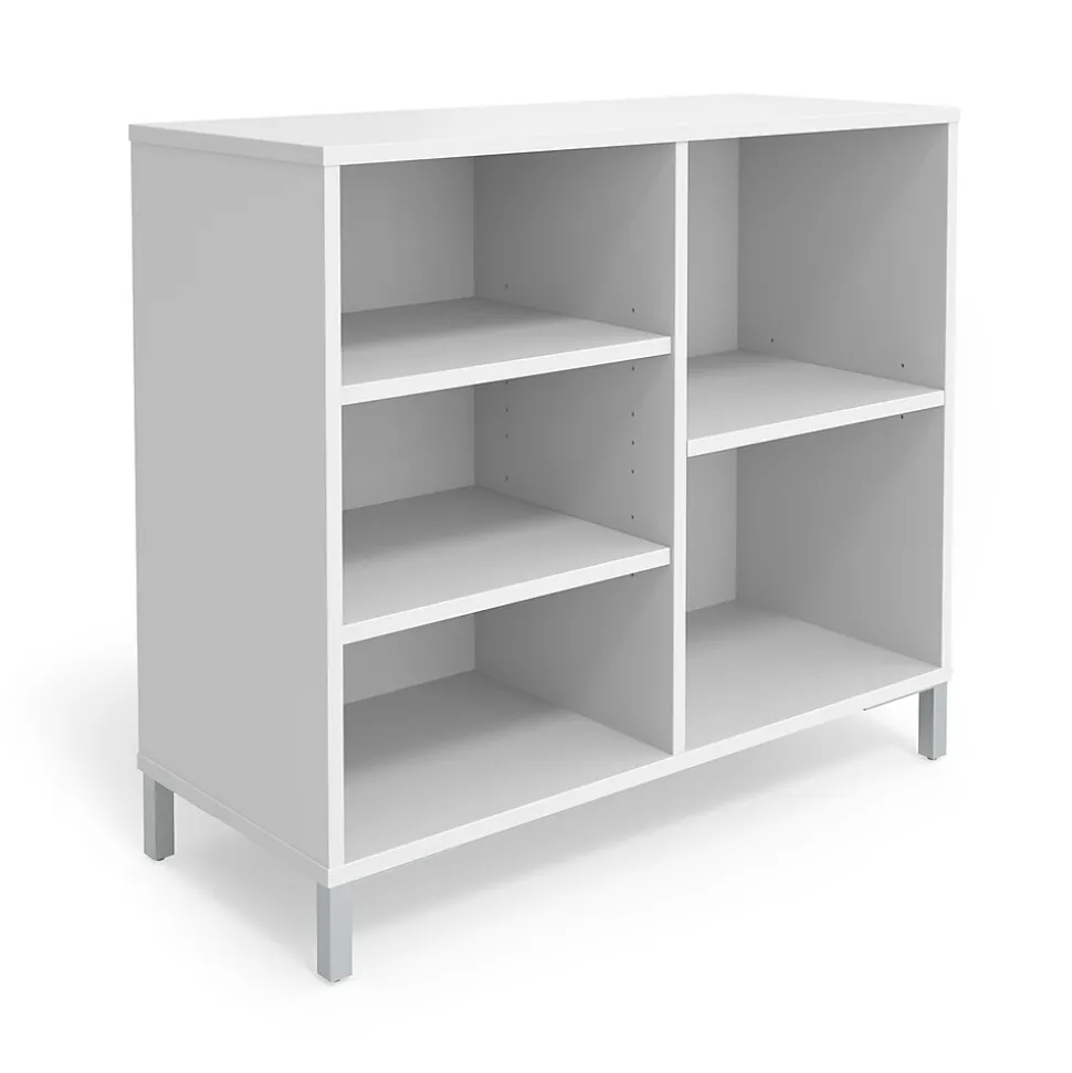 Keep business documents and office supplies organized for a professional environment with this bookcase. Five shelves offer open storage space, while the included grommet reinforces the cable management holes for handling electronic device wires effectively. This Union & Scale™ Essentials five-shelf bookcase features adjustable shelves for customizing the storage space according to your needs and the white finish provides a clean, fresh look for your workplace.