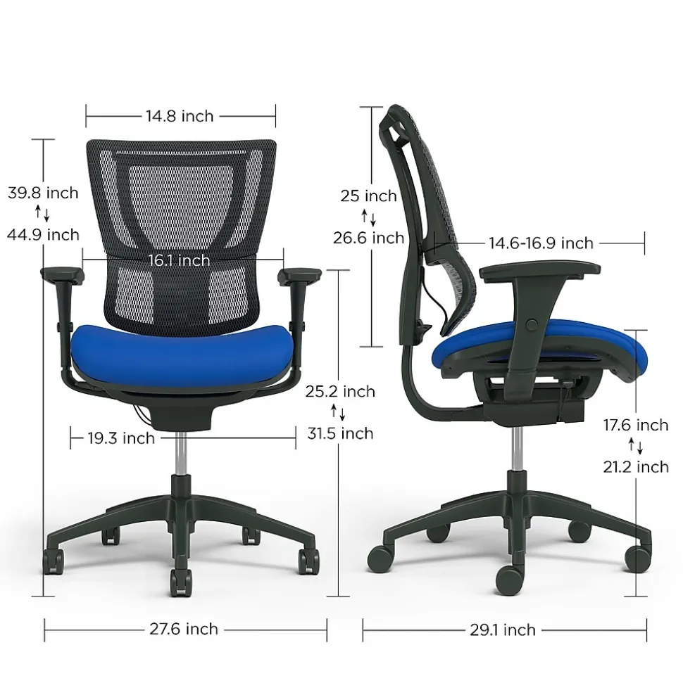 - Overall dimensions: 39.7-44.7″H x 27.6″W x 29.1″D ; Seat dimension: 17.6-22.2″H x 18.62″W x 15.55-17.13″D ; Back dimensions: 29.53″W