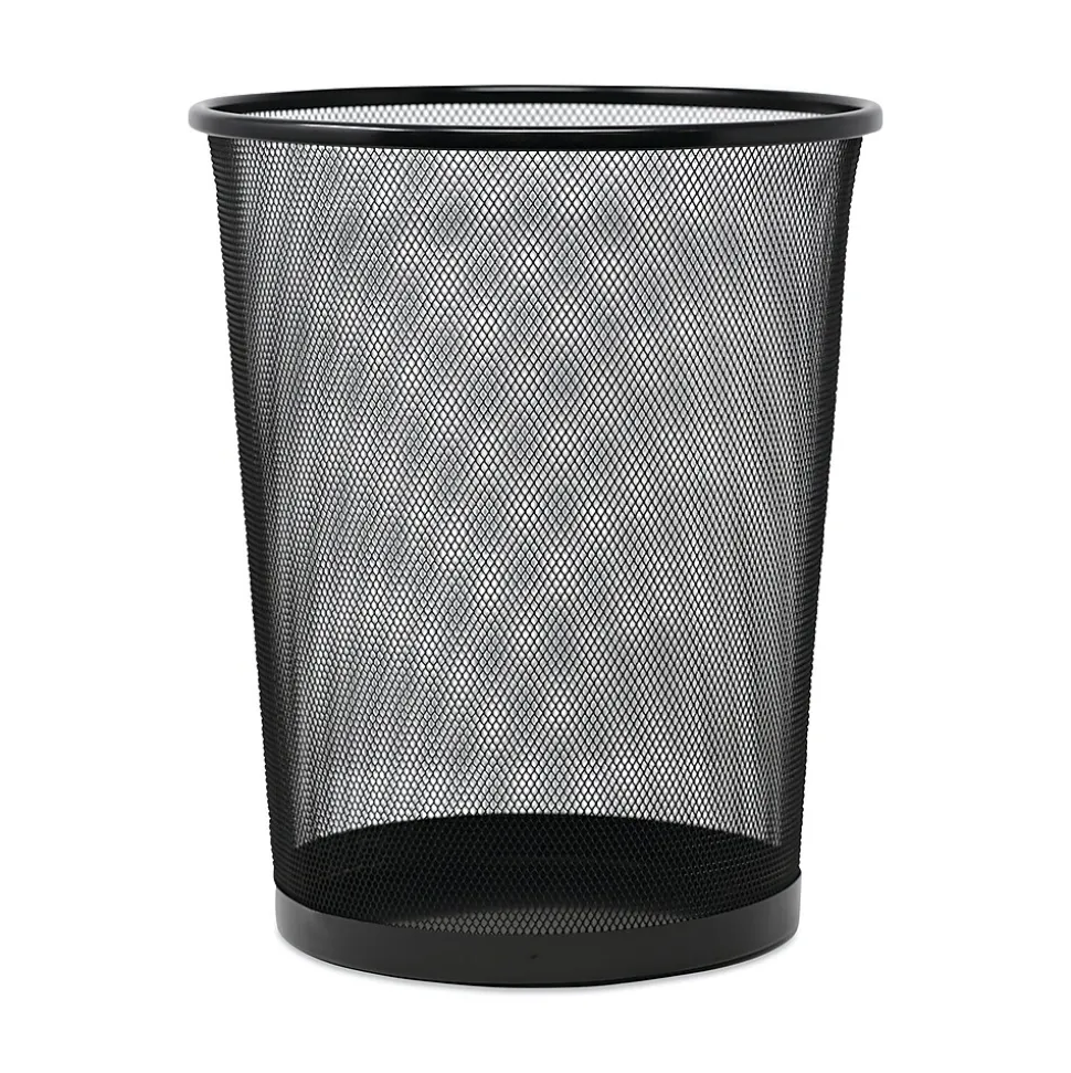 This wastebasket has a stylish design of mesh that looks great while keeping trash in its place.
