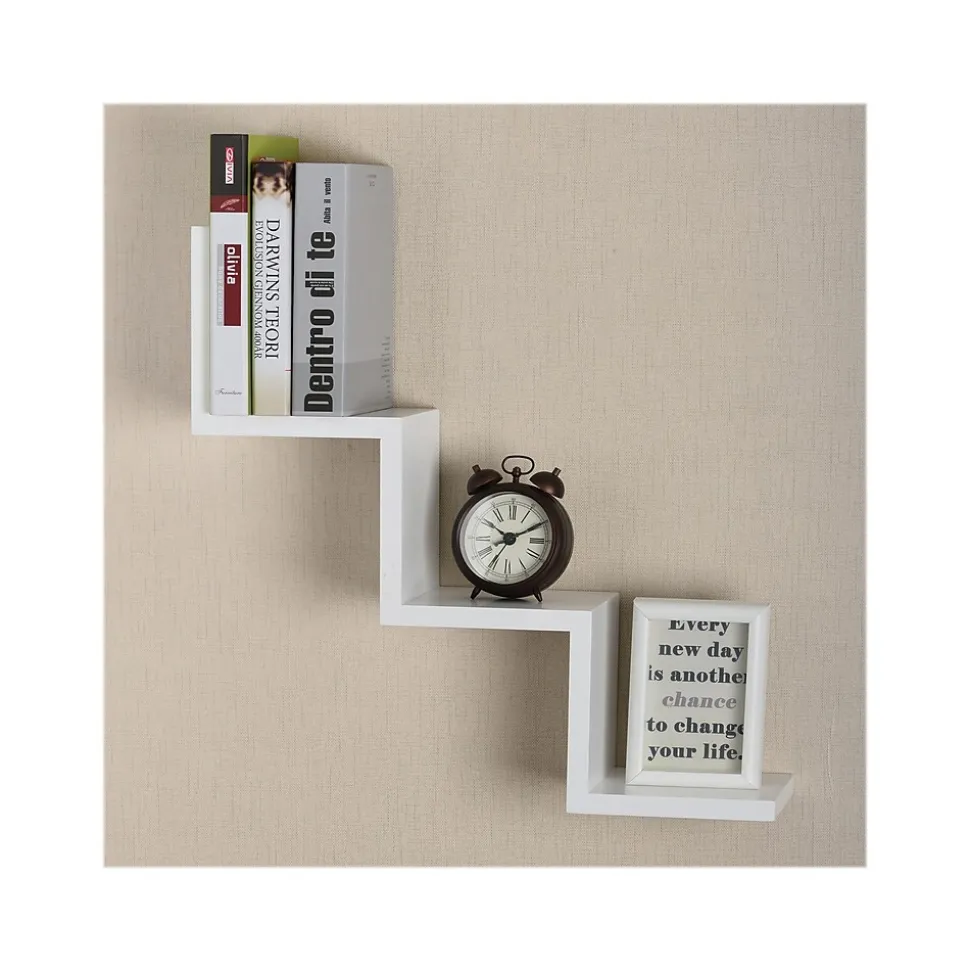 Showcase cherished photos, keepsakes, and other decorative items on this functional and attractive shelving solution by V-Light. Includes one ladder-style floating wall unit with three display shelves measuring 5.75″ x 5.75″ each. It features a timeless white finish to complement virtually any home or office decor. Included installation hardware makes for easy wall mounting, with no visible wiring or hardware connections.