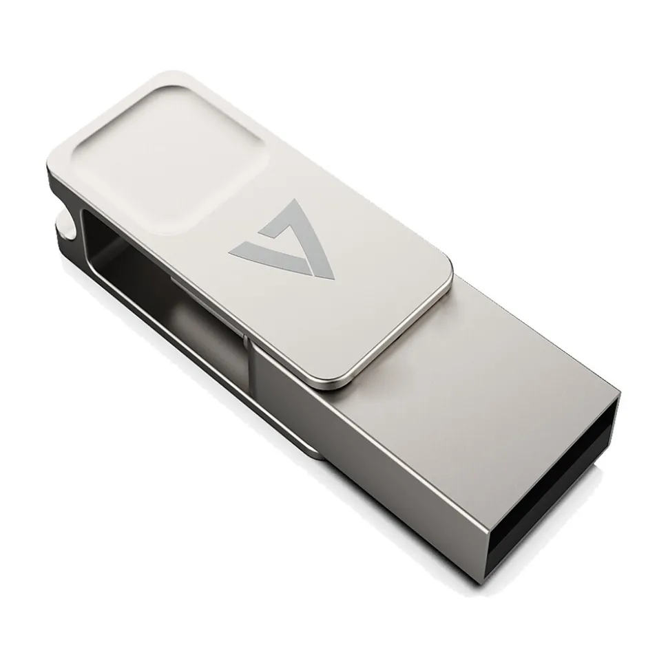 Quickly backup important files and photos with the V7 dual-purpose flash drive from V7. USB-C on one side, traditional USB-A on the other side – tucked into a sleek, metal housing makes this flash drive the perfect companion for on the go storage and backup.