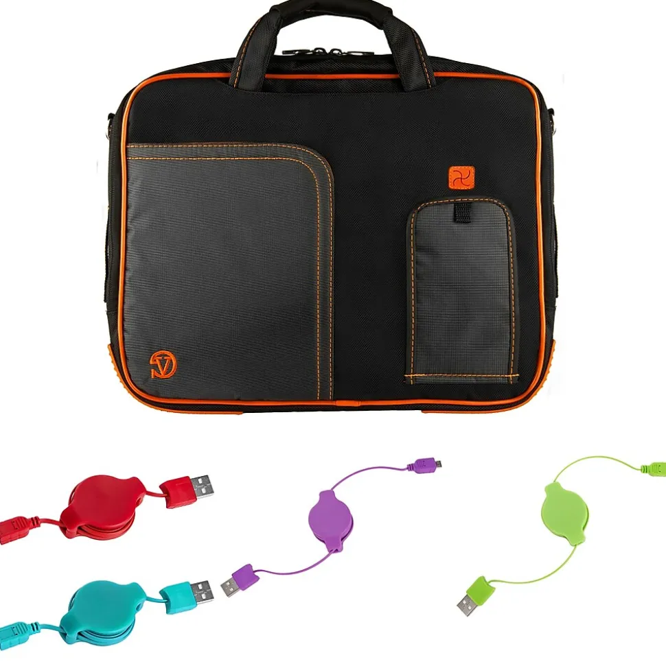 Office Business Travel Laptop Case up to 12 inch laptop + 4x MicroUSB Charging Cables. Carry and protect your surface pro and accessories in style with this shoulder bag. This ultra lightweight and stylish shoulder bag is made with well-knit dual zippers. Compact laptop case with padded shoulder strap and handles that compact into the bag Easily store phones or MP3 players up to 5.75in X 3.25in in size and text, change songs, view and reply to emails etc. all without removing device from the case! The see through covering does not interfere with touch screen capabilities! Both sides of the bag have a closeable slot so your device can remain in the bag while charging.Package includes FOUR micro usb retractable cables. Now you can charge your phone and tablet any time anywhere without any mess.