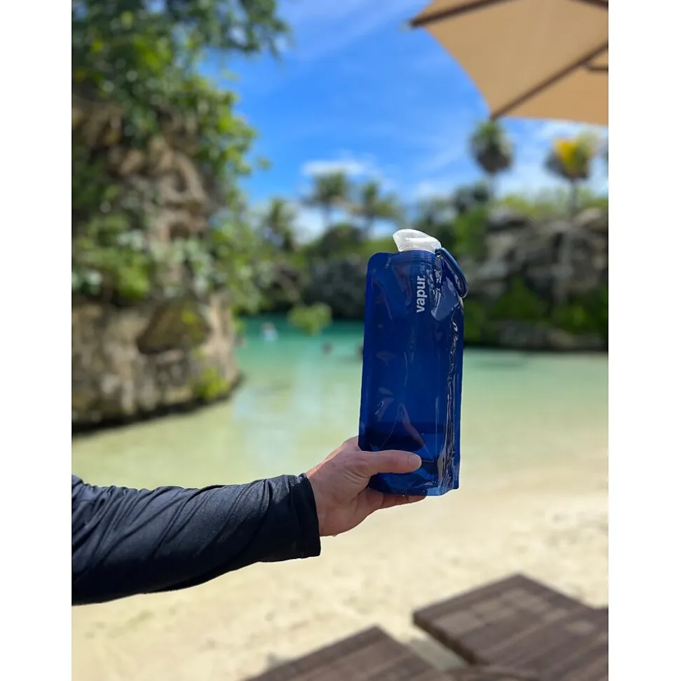 The Vapur Anti Bottle is BPA free and stands when full and folds when empty. The bottle is dishwasher safe and can be attached to any active gear through the integrated carbiner on the cap. It is the perfect companion for your next adventure, wether hiking in the mountains, camping, kyaking or simply taking the family on that special vacation, hydrate anywhere and everywhere!