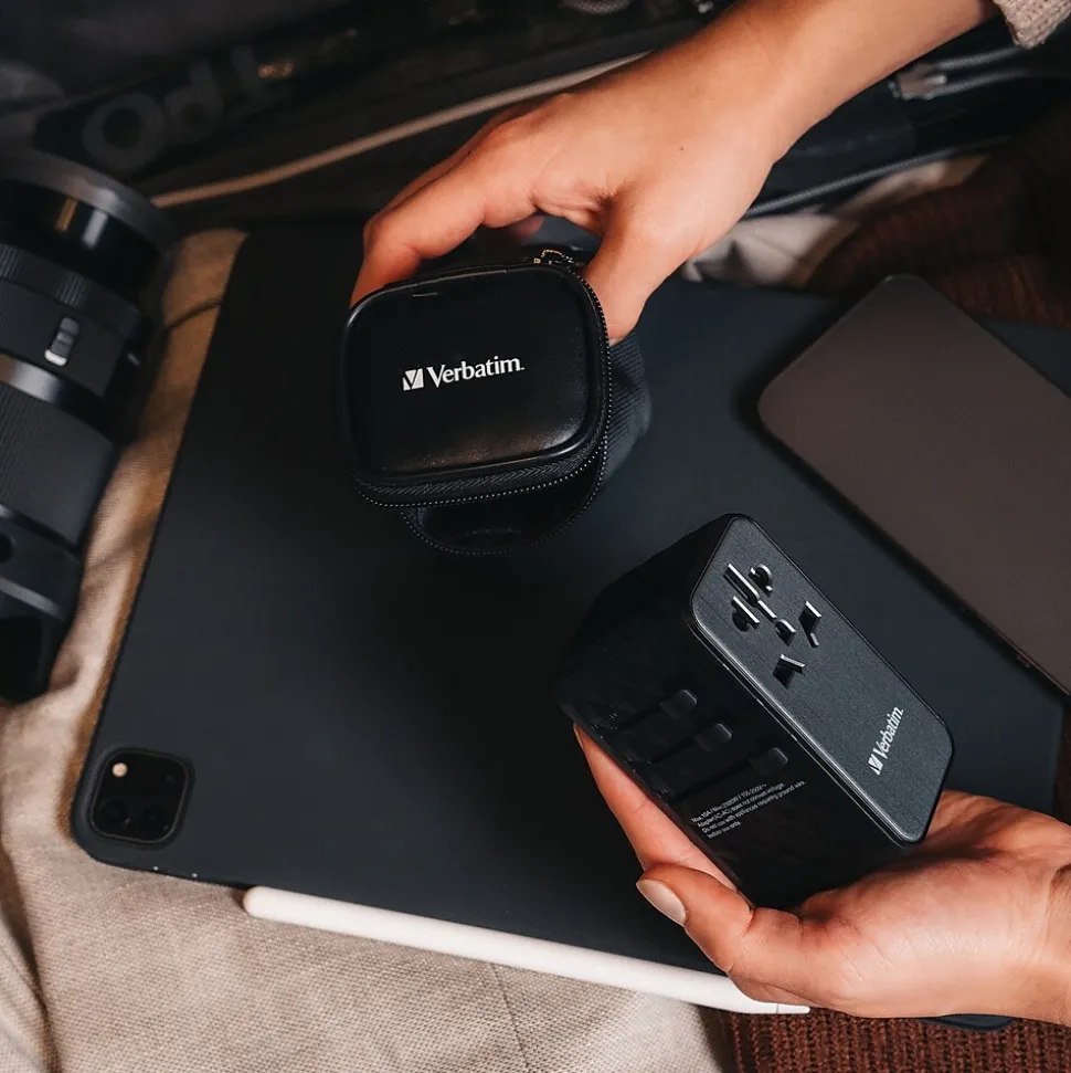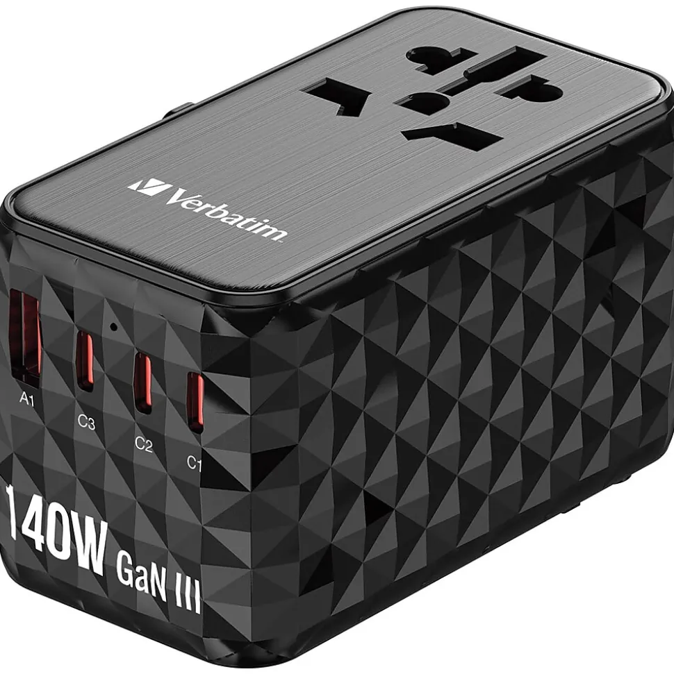 This adapter supports over 180 countries, offering EU, UK, US, Australia, and China plug options. Utilizing advanced GaN III technology, it’s more efficient and compact. This 5-in-1 adapter allows simultaneous charging of five devices through AC and USB ports, including two (2) USB-C with Power Delivery 3.1 (with PPS support), Quick Charge 4+ output, up to 140W each, one (1) USB-C up to 18W, and one (1) USB-A ports up to 18W.Ideal for international travel, this adapter gives you 100% peace of mind wherever you may go.Verbatim’s GaN III Universal Travel Adapter comes with a 2-year Limited Lifetime warranty.