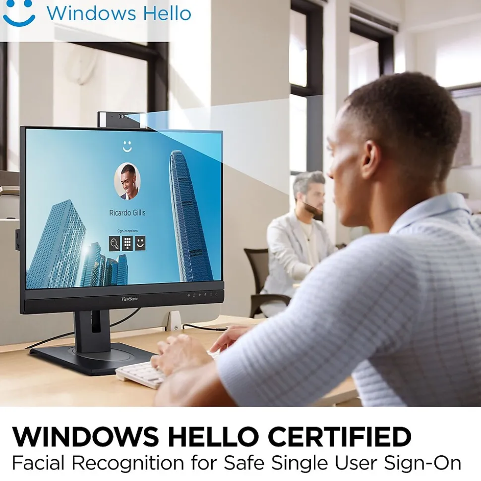 - VIDEO CONFERENCING MONITOR: Built-in microphone, front-firing 5W speakers, and a 1080p camera.