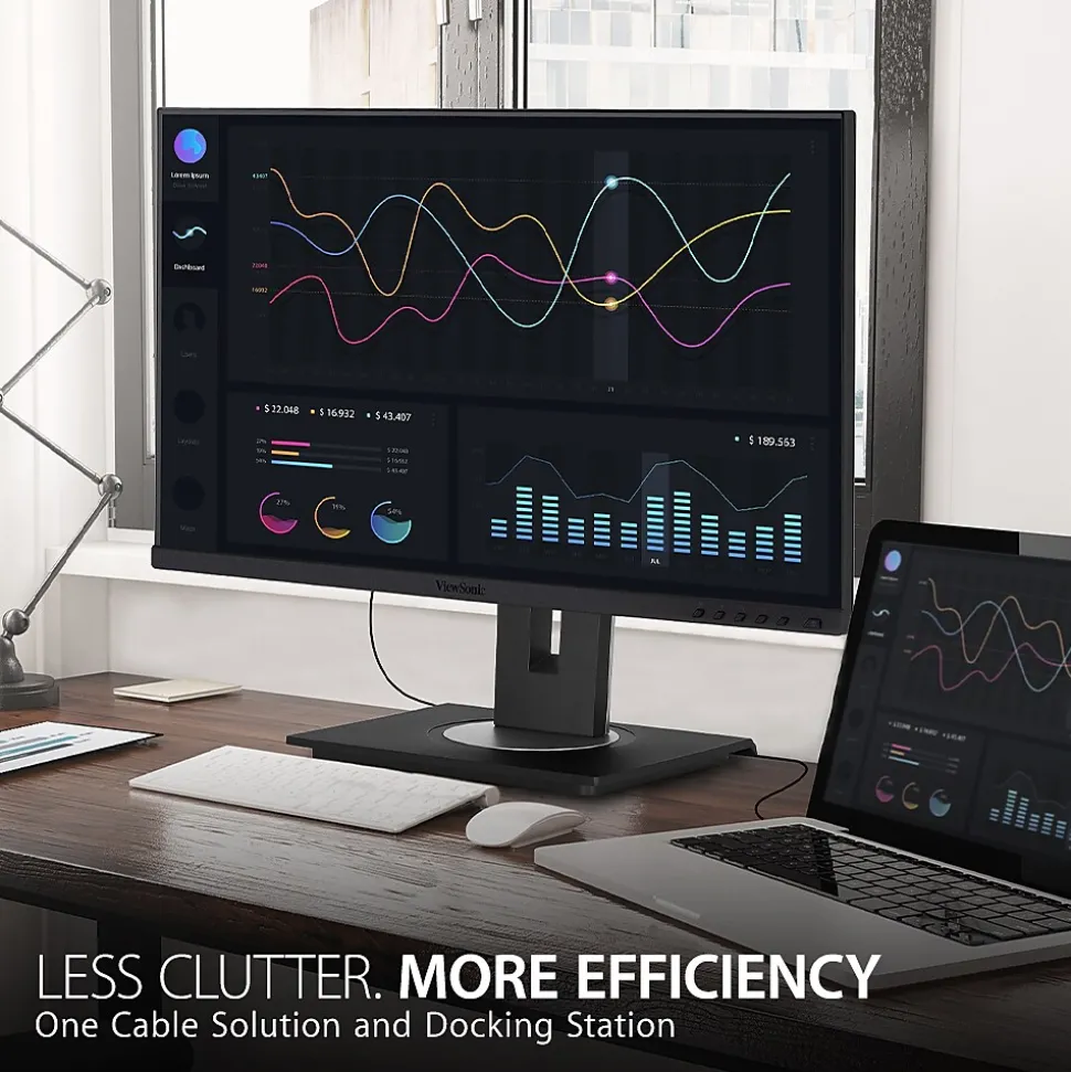 Designed to boost productivity and maximize output, the ViewSonic VG2456 is a 24-Inch docking monitor that transforms your desktop into a streamlined and efficient workspace. Enjoy reliable and flexible network connectivity with the integrated gigabit Ethernet port, while the latest USB 3.2 Type-C connectivity makes dual-monitor setup a breeze. That’s not all, the integrated USB hub also provides single-cable simplicity for connecting and charging your peripherals and accessories. A best-in-class ergonomic design features 40-degree tilt and bi-directional pivot so your screen and workspace are as comfortable as you need. In addition, the included vDisplay software gives you quick and easy OSD control, as well as customized screen templates for easy multi-tasking. This monitor is also shipped in eco-friendly biodegradable packaging, along with an easy-to-install quick release stand that makes for quick deployment and a lower total cost of ownership.