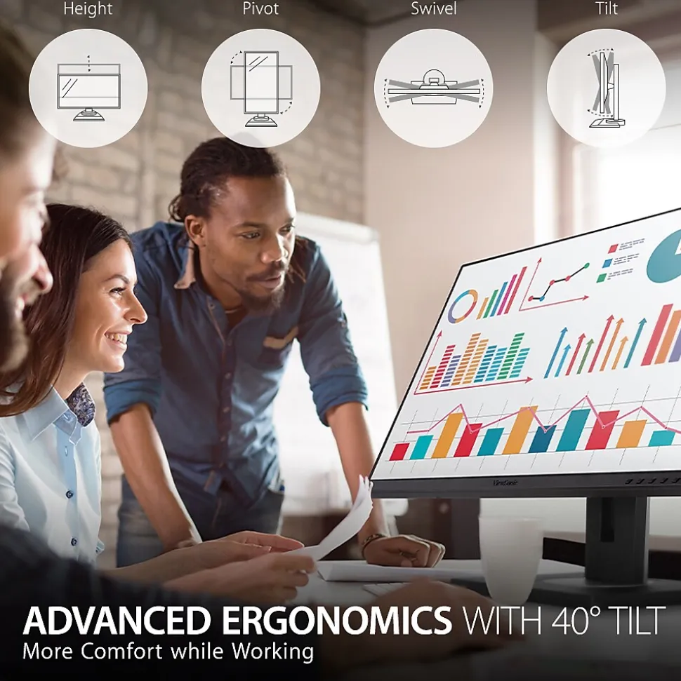 - ERGONOMIC STAND: Advanced ergonomics (40-degree tilt, swivel, rotate and height) for all-day comfort