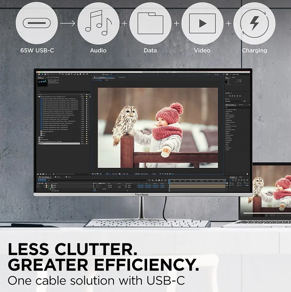 - LESS CABLE CLUTTER: USB-C connectivity for fast data, audio and video transfer, and 65W charging over one cable