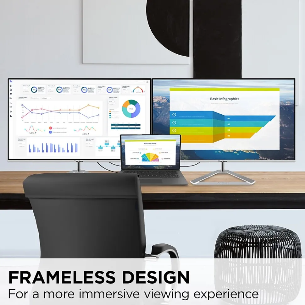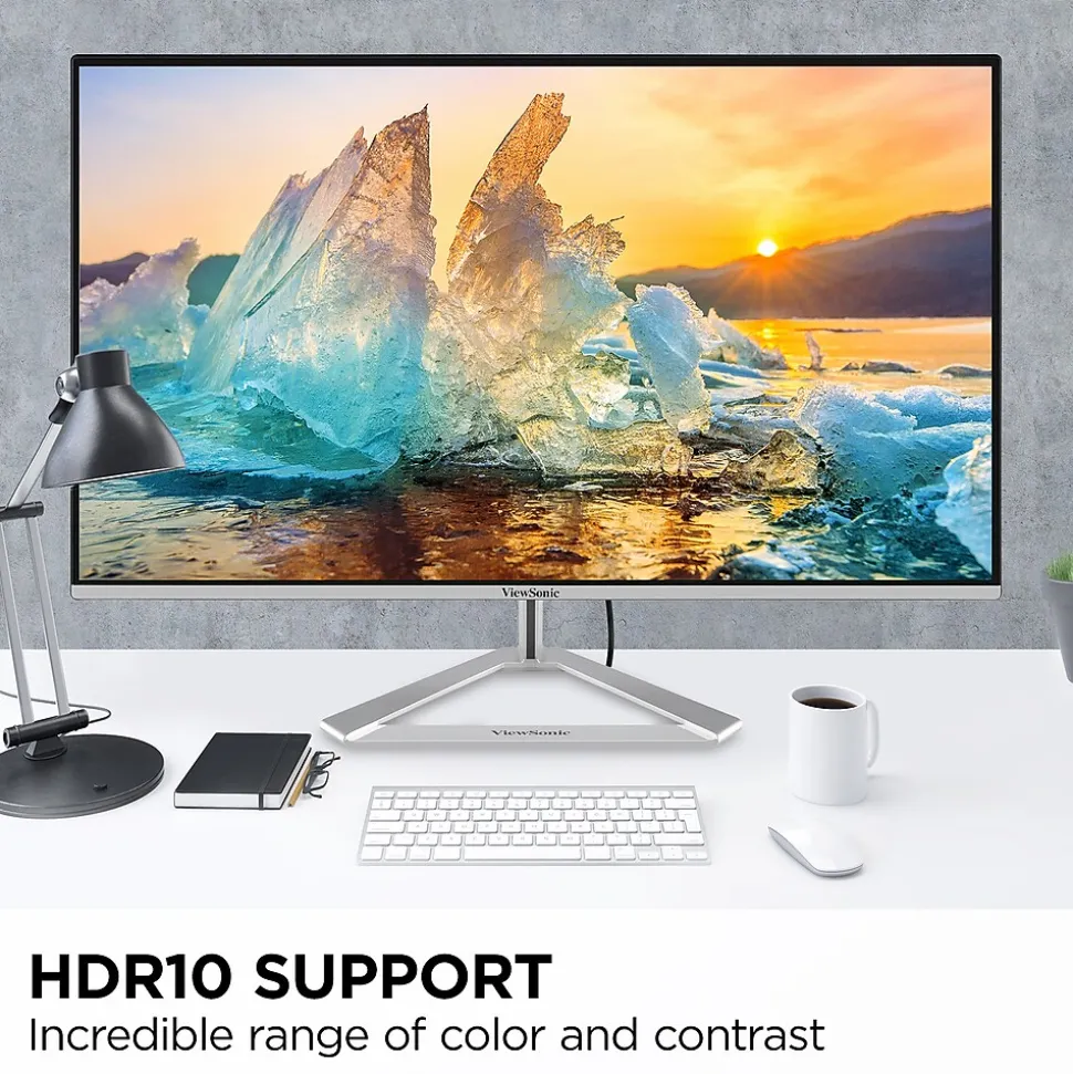 Whether you’re working hard on a presentation or watching a movie, the ViewSonic VX2776-4K-MHDU is designed to take your setup to the next level. Featuring a SuperClear IPS panel and a sleek frameless design, this monitor provides a near-seamless viewing experience that’s ideal for multi-monitor configurations. The stunning 4K Ultra HD resolution delivers four times more pixels than Full HD monitors, so you can have the clarity and precision you need for work and play. USB 3.2 Type-C connectivity lets you send video, audio, data, and 65W of charging power over a single cable, while HDMI and DisplayPort inputs keep you connected to your favorite devices. HDR10 content support helps this monitor display vivid colors at a brightness that substantially exceeds standard monitors.