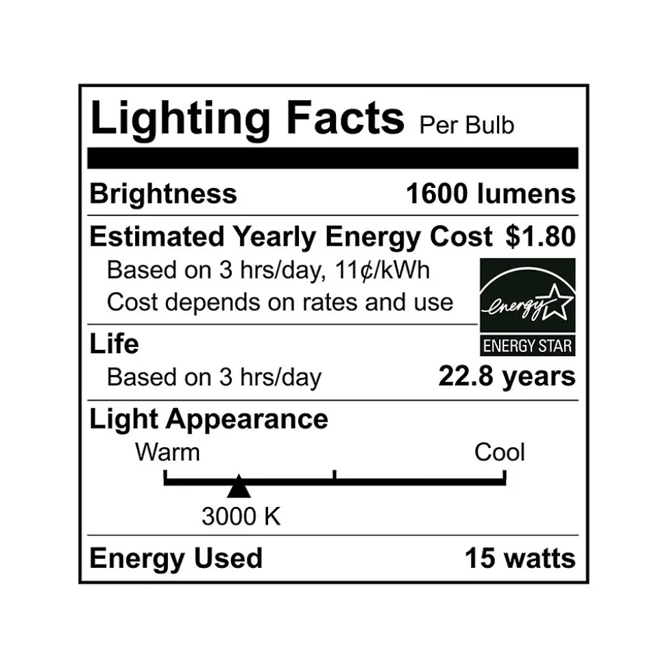 - Provides balanced warm white (2700K) light at 1600 lumens with a wide beam angle of 210 degrees