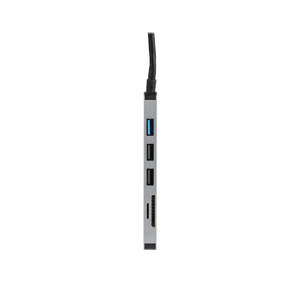 The Vivitar Creator Series six-in-one aluminum adapter with 4K USB Type-C to HDMI interface, SD and microSD card reader, and three USB ports provides more ports to connect your devices. The hub features a 4K HDMI output to mirror or extend your device and stream 4K UHD or Full HD (1080p) to any TV, projector, or monitor. You can connect up to three additional USB devices like printers, keyboards, mouses, or flash drives with data transfer speeds up to 5Gbps. The built-in SD/SDHC and microSD card reader slots let you copy photos and videos easily. This Vivitar USB Type-C hub features a compact and lightweight aluminum design that is perfect for home, office, or on the go. Works with MacBooks, Chromebooks, and Windows laptops with a USB Type-C port.