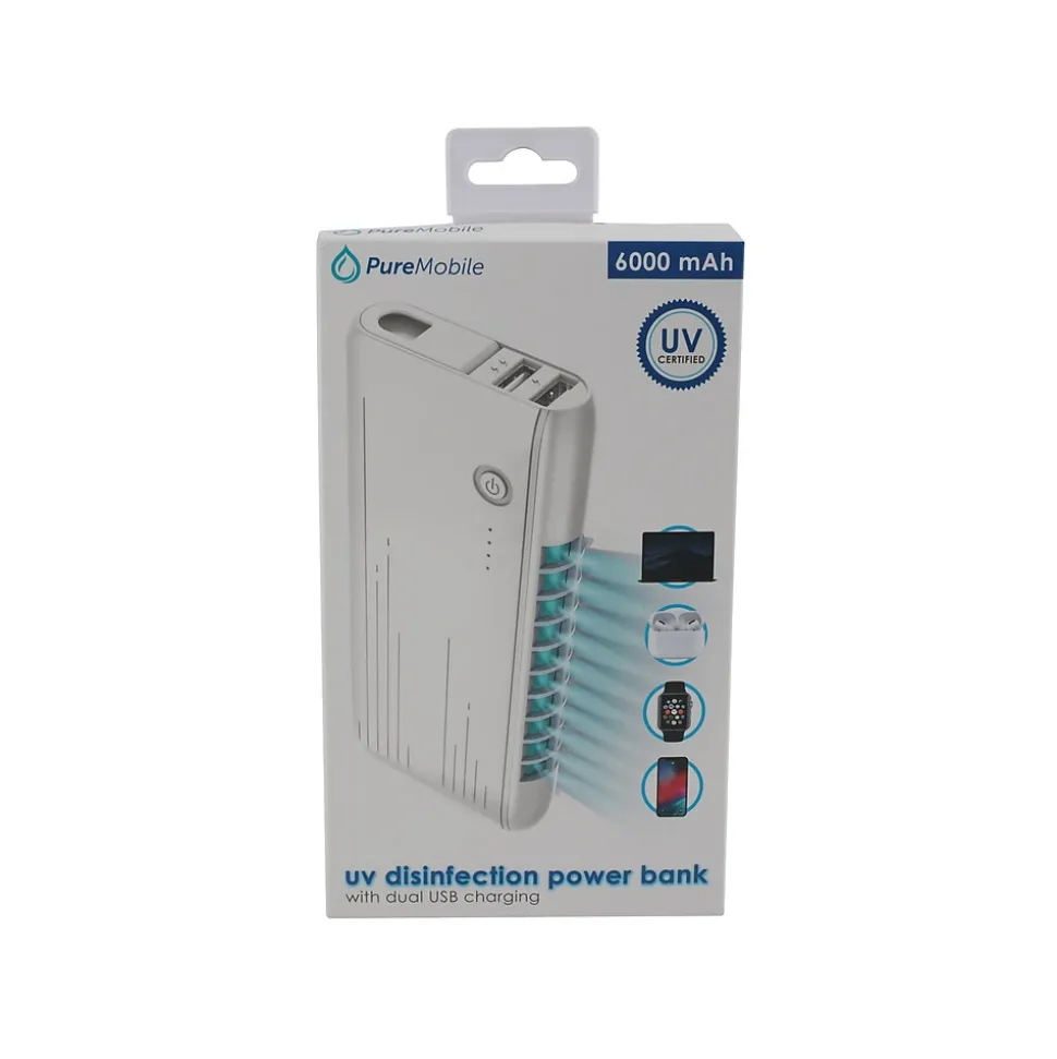 This 6000mAh power bank can charge two devices at home or on the go. It also disinfects your devices while charging. UV rays remove 99% of bacteria and will eliminate microbes hidden in crevices that cannot be reached by a cleaning wipe.
