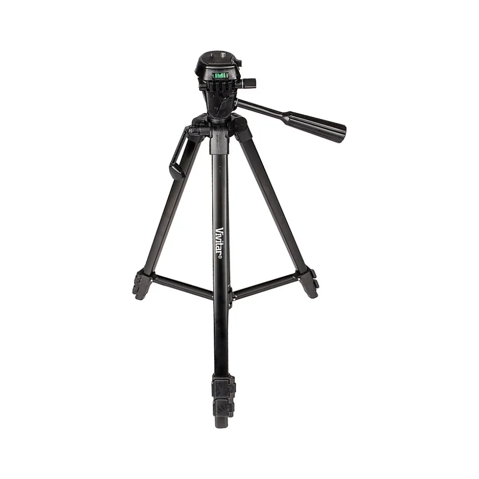 Stand up to the creative world of photography with the Vivitar 52″ photo/video tripod. The three-way fluid pan head with bubble level gives the photographer an infinite amount of possibilities for different angles and points of views. The quick-release mount keeps the camera in place while shooting for easy transportability. The elevated center column with brace puts the camera on a small pedestal, making it the center of a photographer’s attention. The rubber feet add more durability to the tripod, which is able to extend to an impressive 52″ and handle up to 5 lbs. of weight.