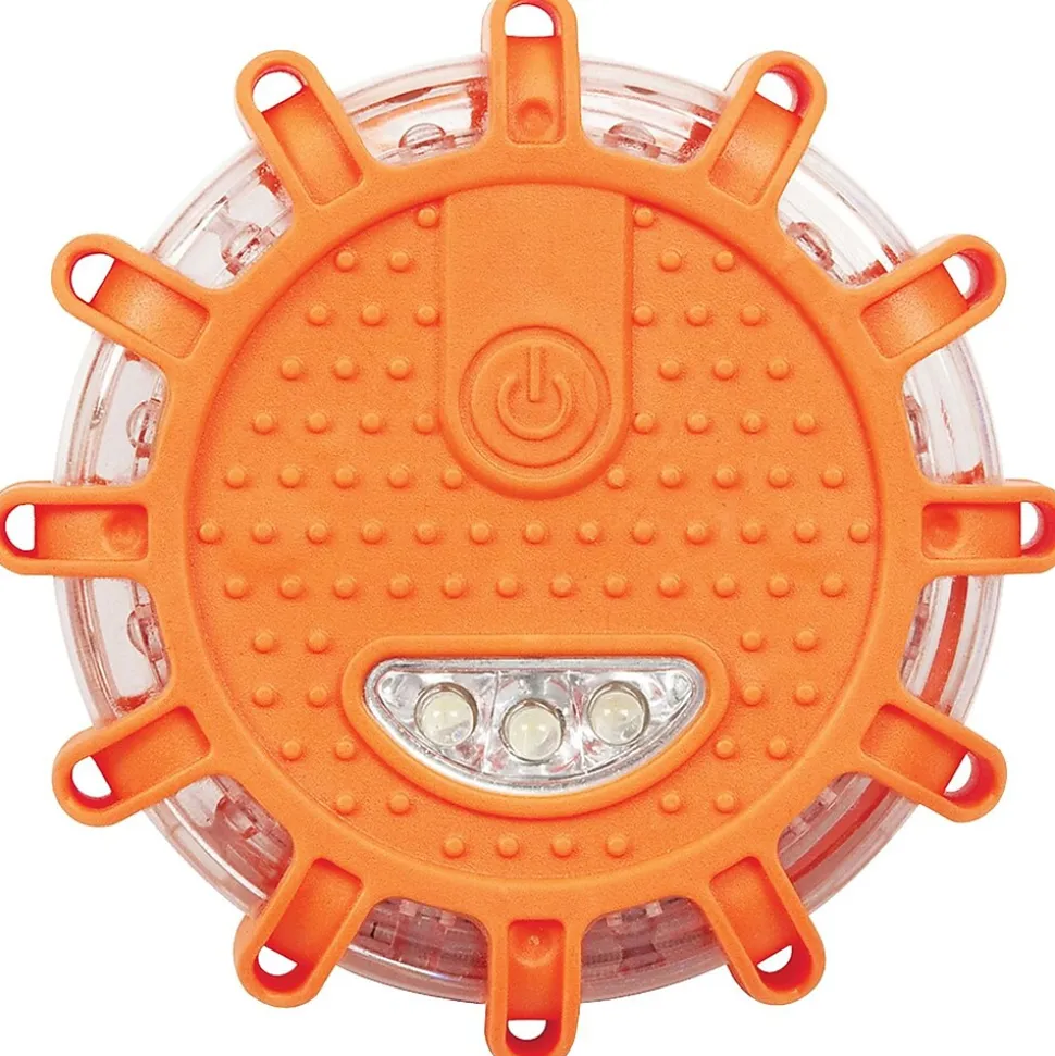 In case of emergency, warn others of your situation. This 3 pack of FRED Light Flashing Roadside Emergency Disks by Wagan Tech is a reusable, safer alternative to emergency flares and has 10 light settings. Light up your tent or identify yourself if you are in trouble. Help police and fire locate your house in emergency situations. Warn other vehicles of your situation. The disk is magnetic, waterproof, shatterproof and safe for all applications.