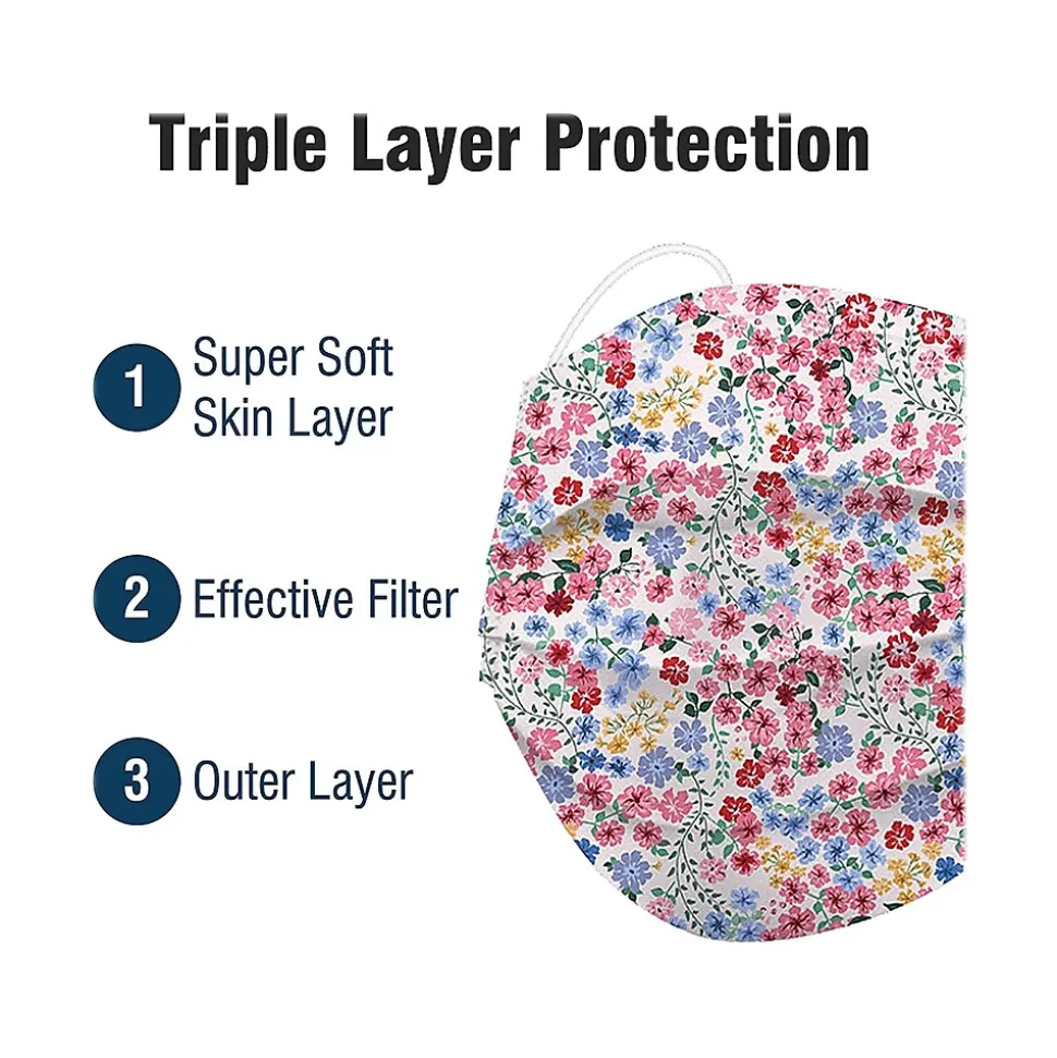 - Adjustable wire runs along the top to serve as an adjustable nose clip; features a floral design