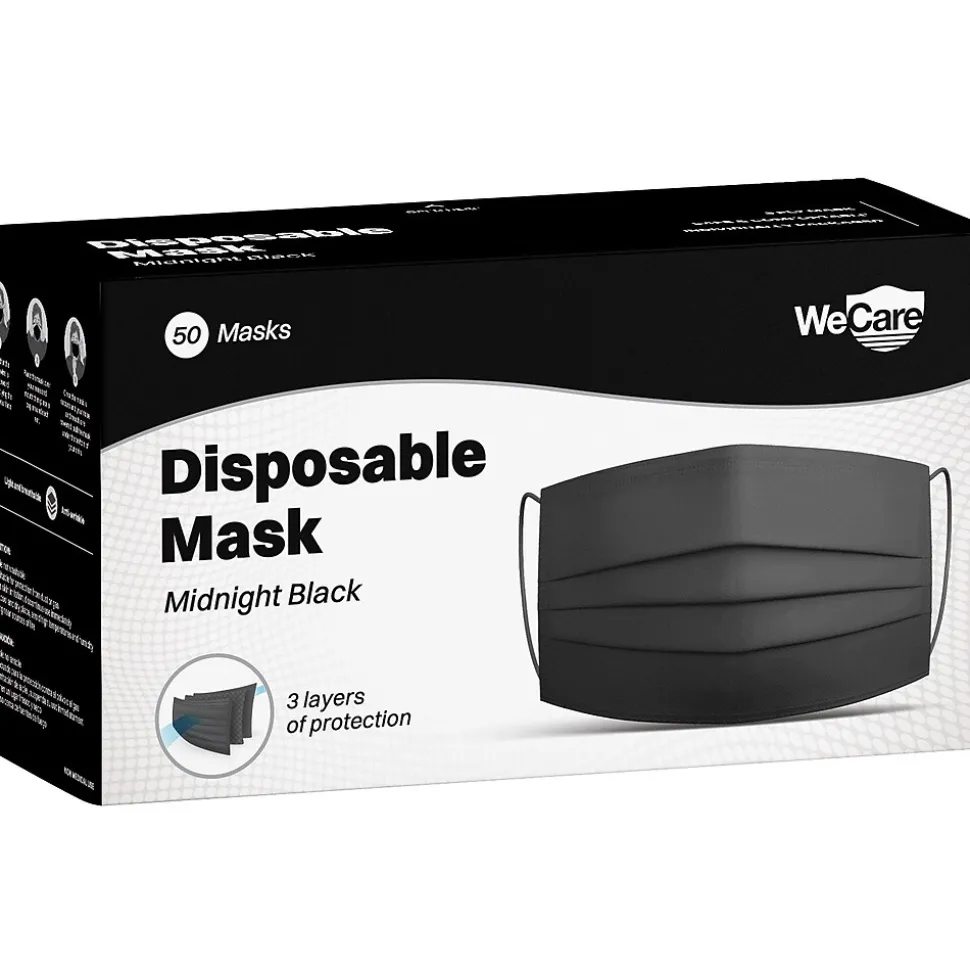 - Adjustable metal wire runs along the top as a nose clip; comes in midnight black