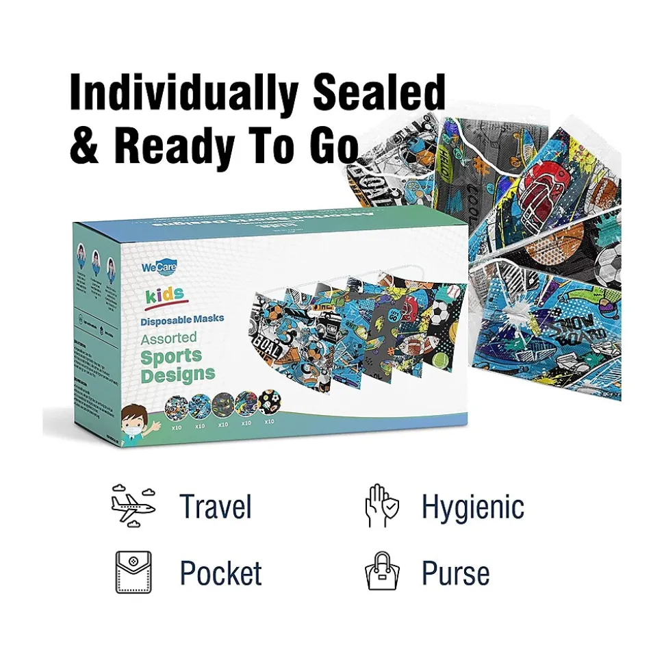 - 50 masks per box, each individually wrapped