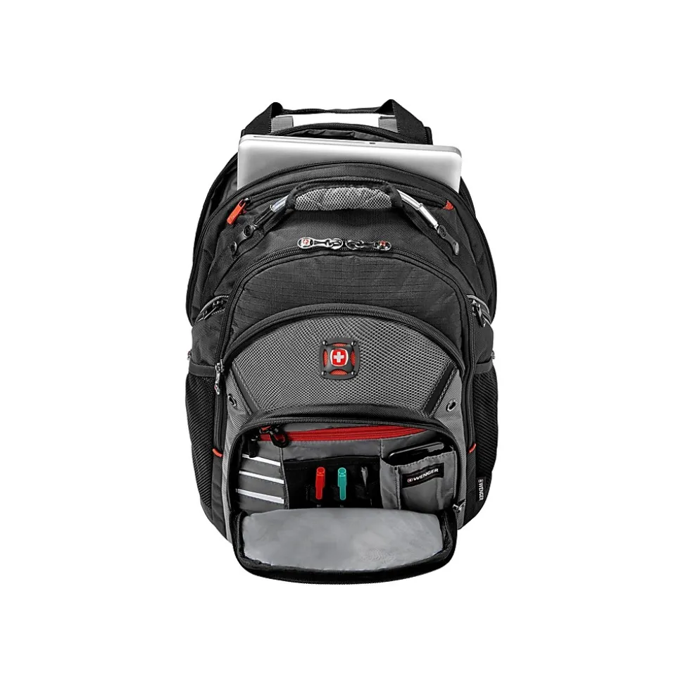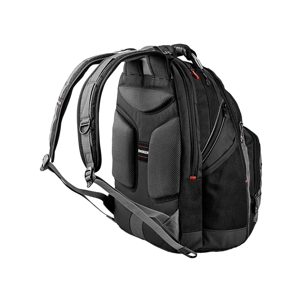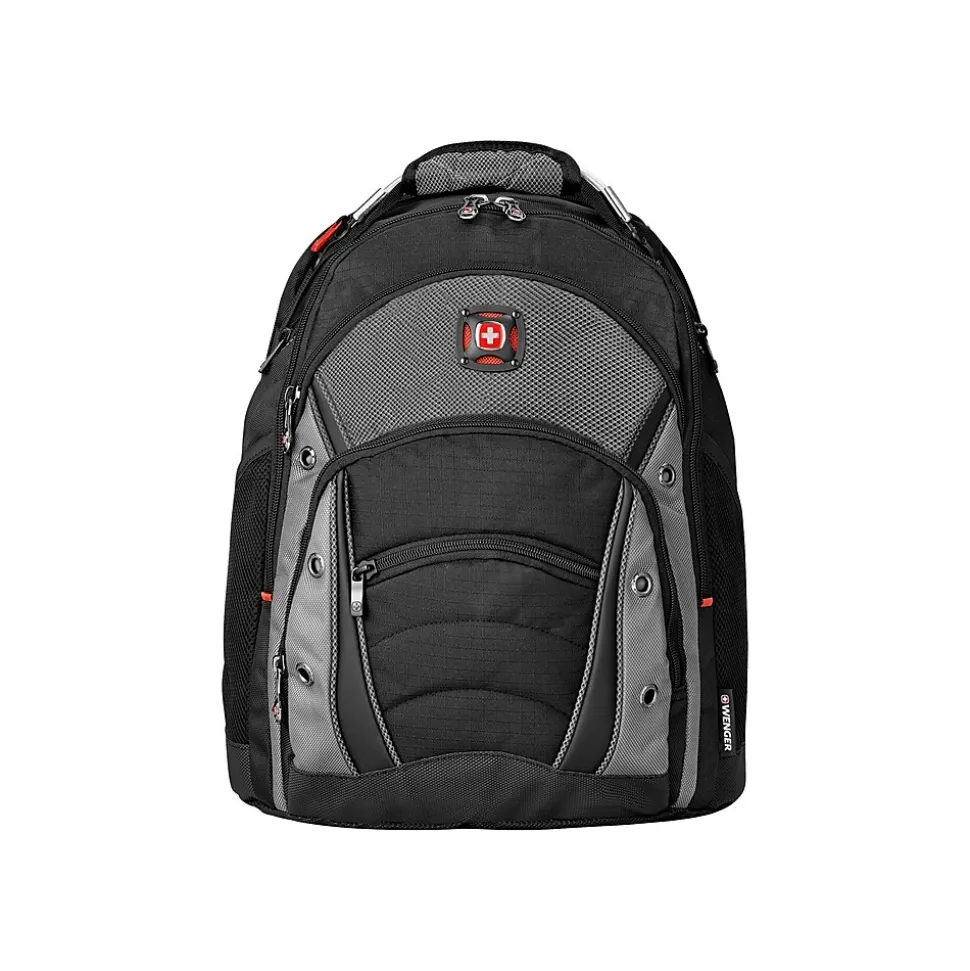 Protect portable electronics during your daily commute with this laptop backpack. Ballistic nylon construction provides the strength and durability needed to withstand daily use, while the padded back and shoulder straps offer added comfort for long train rides. This backpack features an expandable laptop pocket to shield your device against accidental bumps and drops. The quick-access pocket keeps keys and cards close at hand, and an MP3 player pocket holds the device securely in place as you listen to favorite playlists. With handy side pockets for water bottles and travel mugs, this Wenger Synergy laptop backpack is perfect for students and office workers on the go.