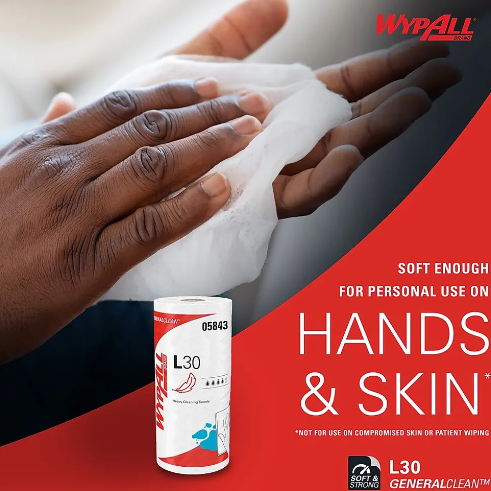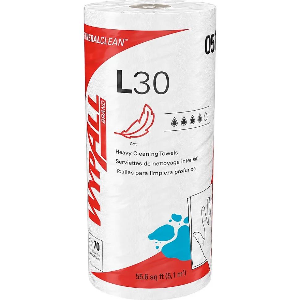 - 70 Sheets/Roll; 24 Rolls of WypAll® GeneralClean™ L30 Heavy Duty Cleaning Towels/Case; 1,680 Sheets/Case; White; Small Roll; Strong and Soft Towels