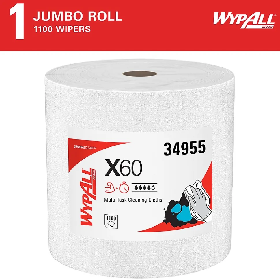 - 1,100 Sheets/Roll; 1 Roll of WypAll® GeneralClean™ X60 Multi-Task Cleaning Cloths/Case; 1,100 Sheets/Case; White; Jumbo Roll; Strong and Absorbent Towels