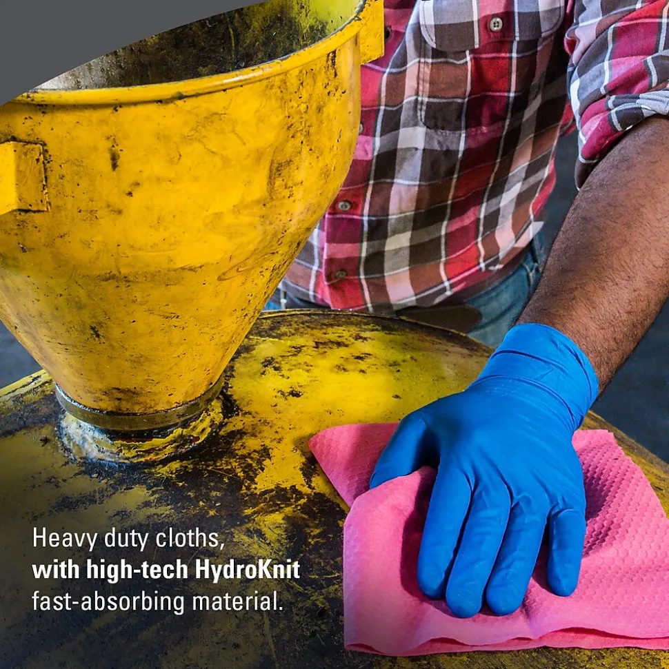 WypAll® is the number one brand of disposable wipes in the US and Canada. Maximize performance while minimizing time, effort and product waste. WypAll® Power Clean X80 Heavy Duty Cloths feature innovations like high-tech HydroKnit fast-absorbing material and are durable for scrubbing. They are made of soft pulp fibers, bonded to a polypropylene base sheet for absorbency and durability, making them suitable for removing dirt, oil, grime and solvents in industrial and manufacturing businesses. The reusable cloths are reinforced for strength when wet and dry. Plus, they come in a convenient Pop-Up Box (dispenses one at a time, as an alternative to a box of rags) and are so sturdy that they can often be used more than once (once you’ve used them a few times, they’re disposable). These bulk cloths are a great alternative – safer and more efficient – to replace laundered rental shop towels or and cleaning towels. Use them for heavy duty machine- and part-wiping, wiping metal shavings, prepping surfaces with solvents and cleaning rough surfaces. After all, every business gets dirty. But for the toughest grease and grime, you can trust WypAll® Power Clean X80 Heavy Duty Cloths.