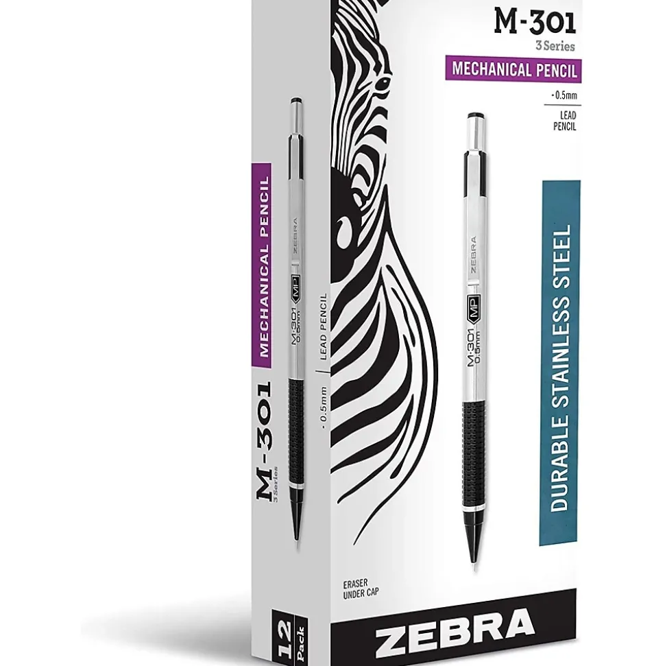Work out math problems and write information with these mechanical pencils. The steel construction provides durability and a sleek appearance, while the metal clips let you carry these pencils in notebooks or pockets. These Zebra black extra-fine-point mechanical pencils are refillable for long-lasting use.
